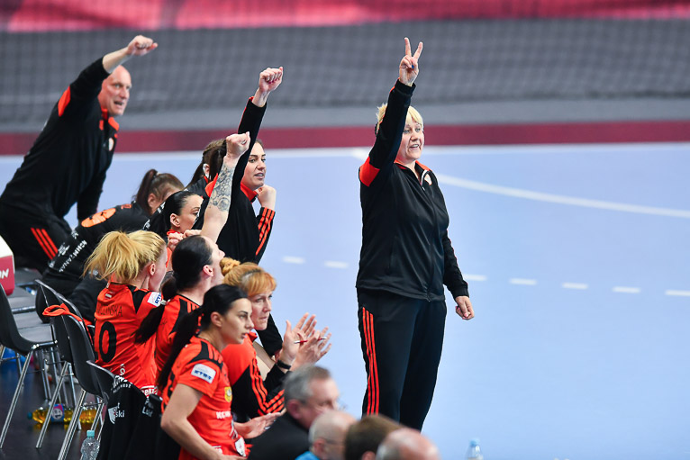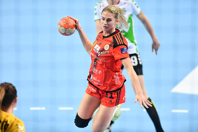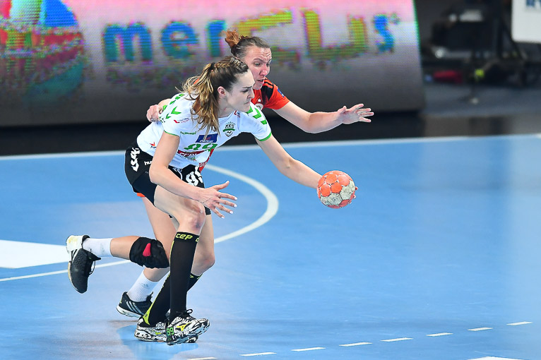 Po udanych interwencjach po obu stronach zobaczyliśmy dwie bramki. Najpierw trafiła Aleksandra Rosiak, po chwili odpowiedziała Małgorzata Mączka. W szóstej minucie Miedziowe, za sprawą Adrianny Górnej wyszły na prowadzenie. Dwie minuty później o czas poprosił Robert Lis. Lubinianki grały bardzo dobrze w obronie, a jeszcze lepiej w bramce spisywała się Monika Maliczkiewicz, w efekcie czego w siódmej minucie było 4:1. Później było jeszcze lepiej, podopieczne Bożeny Karkut wykorzystywały każdy najmniejszy błąd rywalek, grały z zębem i powiększały swoją przewagę. Po kwadransie rozpędzone Metraco Zagłębie wygrywało już 11:4, a po trzy bramki na swoim kocie miało trio: Semeniuk-Jochymek-Mączka. To ostatnia kolejny raz prezentowała znakomitą formę i atomowe rzuty z drugiej linii, zrywające „pajęczynę” w bramce rywalek. W pewnym momencie przewaga miejscowych zbliżała się do dziesięciu bramek (13:8), jednak przed przerwą zespół z Lubelszczyzny zniwelował nieco straty (14:9).