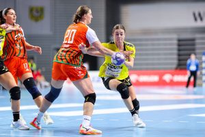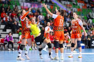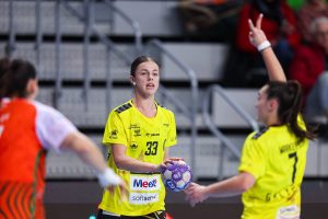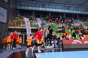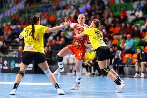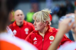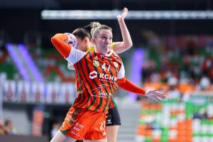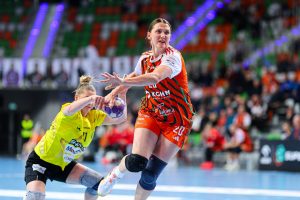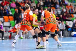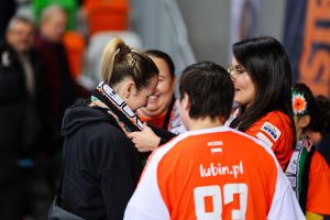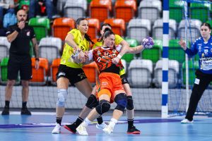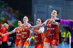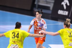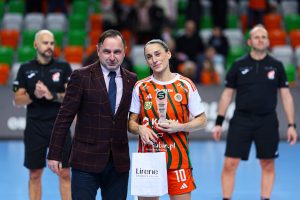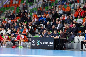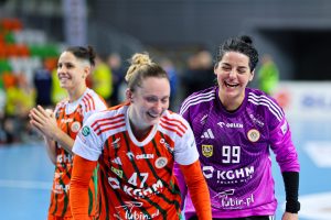 Po zmianie stron dominacja zespołu z Lubina nie podlegała już żadnej dyskusji. Miedziowe grały z dużą swobodą i pewnością siebie, w pełni kontrolując tempo gry oraz przebieg spotkania. Z każdą kolejną akcją przewaga mistrzyń Polski rosła, a zespół konsekwentnie wykorzystywał swoje atuty. Na kwadrans przed końcem meczu wynik brzmiał już 26:16, co dobitnie obrazowało różnicę klas pomiędzy obiema drużynami. Lubinianki nie zamierzały jednak zwalniać tempa — bardzo dobra organizacja gry w środkowym sektorze boiska oraz skuteczna ofensywa przynosiły kolejne trafienia. Po raz kolejny ważną rolę na skrzydle odgrywała Kinga Grzyb, która swoją dynamiką i skutecznością sprawiała rywalkom wiele problemów. Pięć minut przed końcową syreną na tablicy wyników widniał rezultat 30:18, a Miedziowe pewnie zmierzały po kolejne przekonujące zwycięstwo przed własną publicznością.