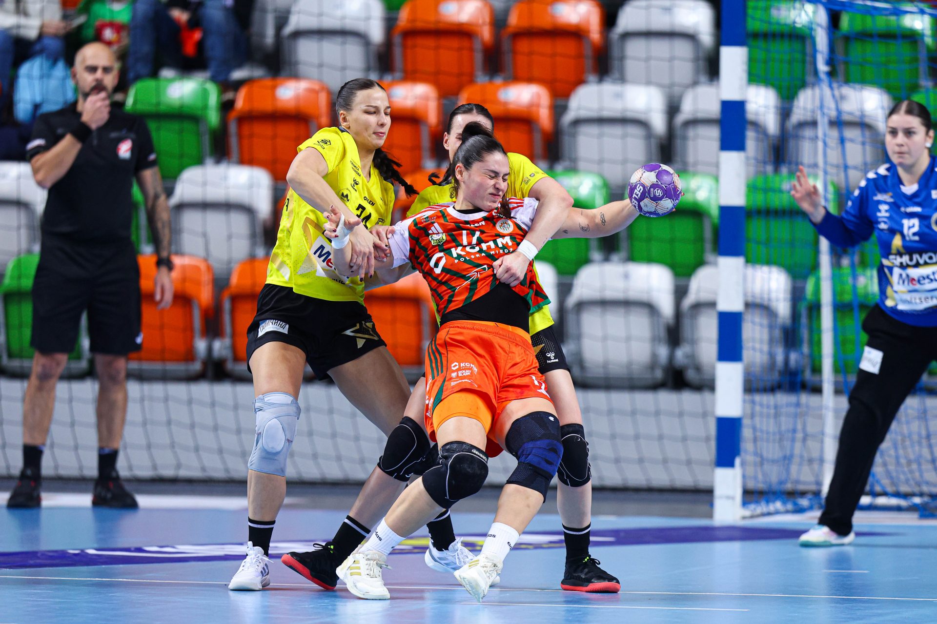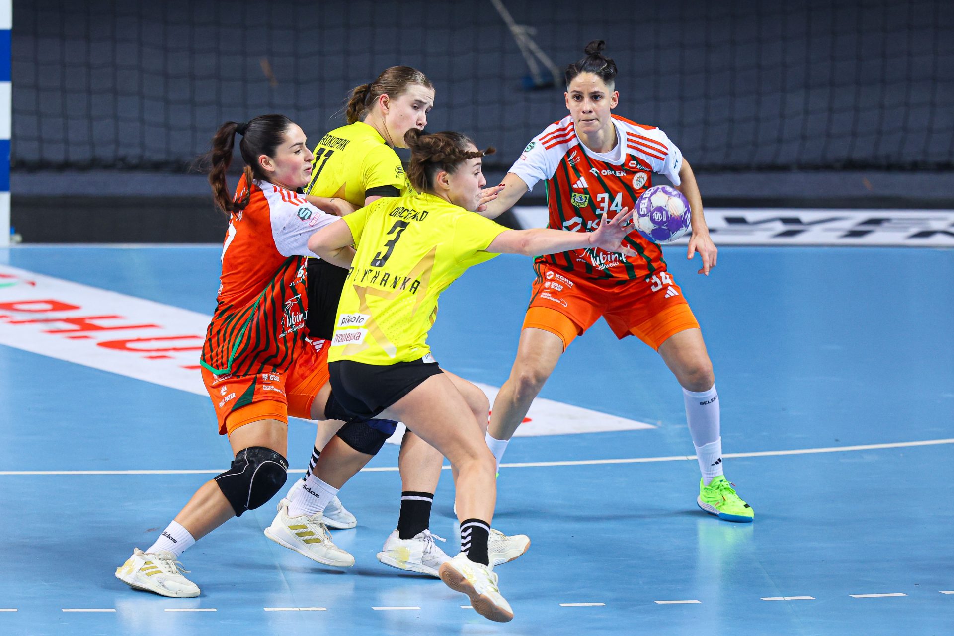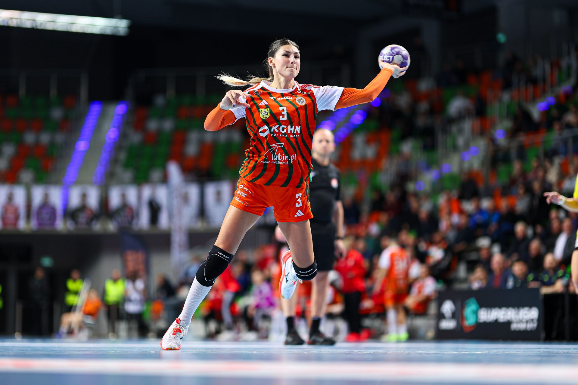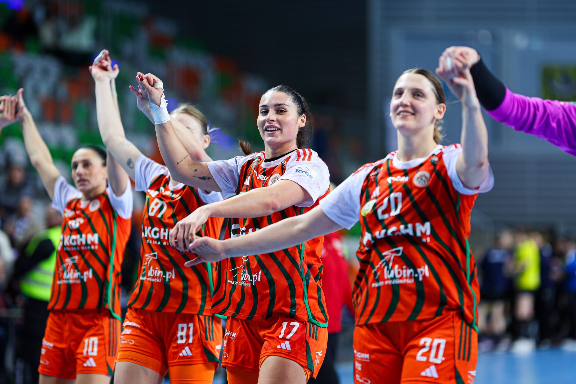 Po zmianie stron dominacja zespołu z Lubina nie podlegała już żadnej dyskusji. Miedziowe grały z dużą swobodą i pewnością siebie, w pełni kontrolując tempo gry oraz przebieg spotkania. Z każdą kolejną akcją przewaga mistrzyń Polski rosła, a zespół konsekwentnie wykorzystywał swoje atuty. Na kwadrans przed końcem meczu wynik brzmiał już 26:16, co dobitnie obrazowało różnicę klas pomiędzy obiema drużynami. Lubinianki nie zamierzały jednak zwalniać tempa — bardzo dobra organizacja gry w środkowym sektorze boiska oraz skuteczna ofensywa przynosiły kolejne trafienia. Po raz kolejny ważną rolę na skrzydle odgrywała Kinga Grzyb, która swoją dynamiką i skutecznością sprawiała rywalkom wiele problemów. Pięć minut przed końcową syreną na tablicy wyników widniał rezultat 30:18, a Miedziowe pewnie zmierzały po kolejne przekonujące zwycięstwo przed własną publicznością.