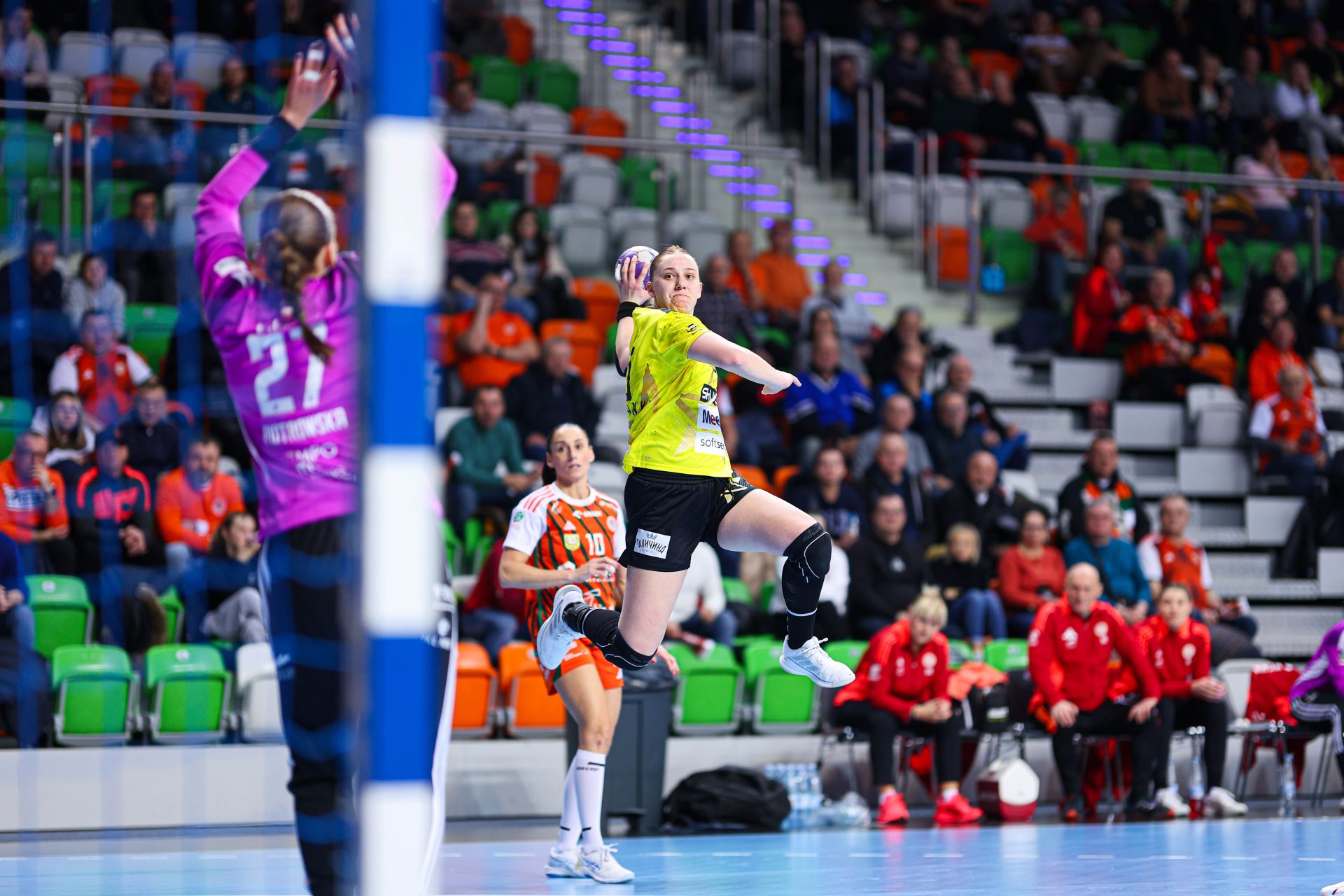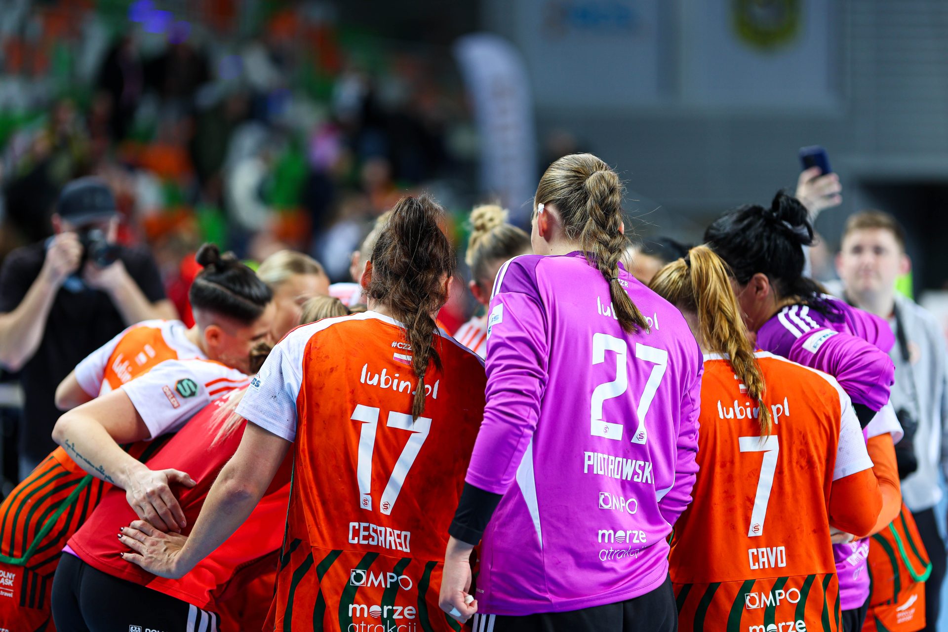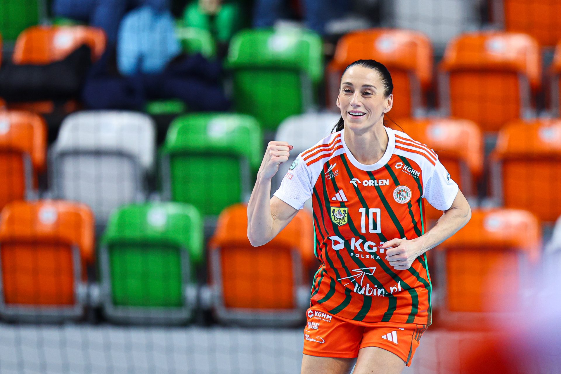 Po zmianie stron dominacja zespołu z Lubina nie podlegała już żadnej dyskusji. Miedziowe grały z dużą swobodą i pewnością siebie, w pełni kontrolując tempo gry oraz przebieg spotkania. Z każdą kolejną akcją przewaga mistrzyń Polski rosła, a zespół konsekwentnie wykorzystywał swoje atuty. Na kwadrans przed końcem meczu wynik brzmiał już 26:16, co dobitnie obrazowało różnicę klas pomiędzy obiema drużynami. Lubinianki nie zamierzały jednak zwalniać tempa — bardzo dobra organizacja gry w środkowym sektorze boiska oraz skuteczna ofensywa przynosiły kolejne trafienia. Po raz kolejny ważną rolę na skrzydle odgrywała Kinga Grzyb, która swoją dynamiką i skutecznością sprawiała rywalkom wiele problemów. Pięć minut przed końcową syreną na tablicy wyników widniał rezultat 30:18, a Miedziowe pewnie zmierzały po kolejne przekonujące zwycięstwo przed własną publicznością.