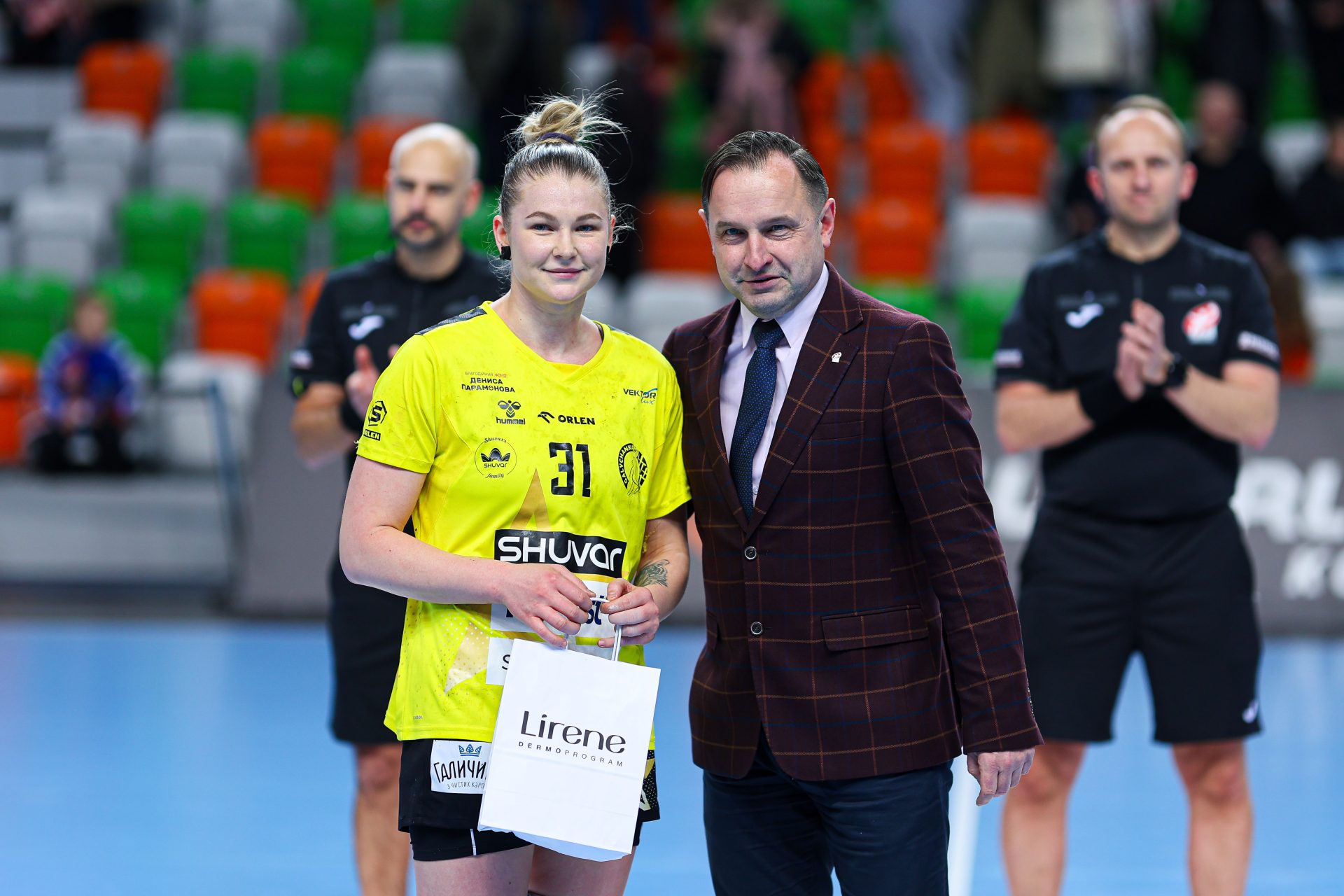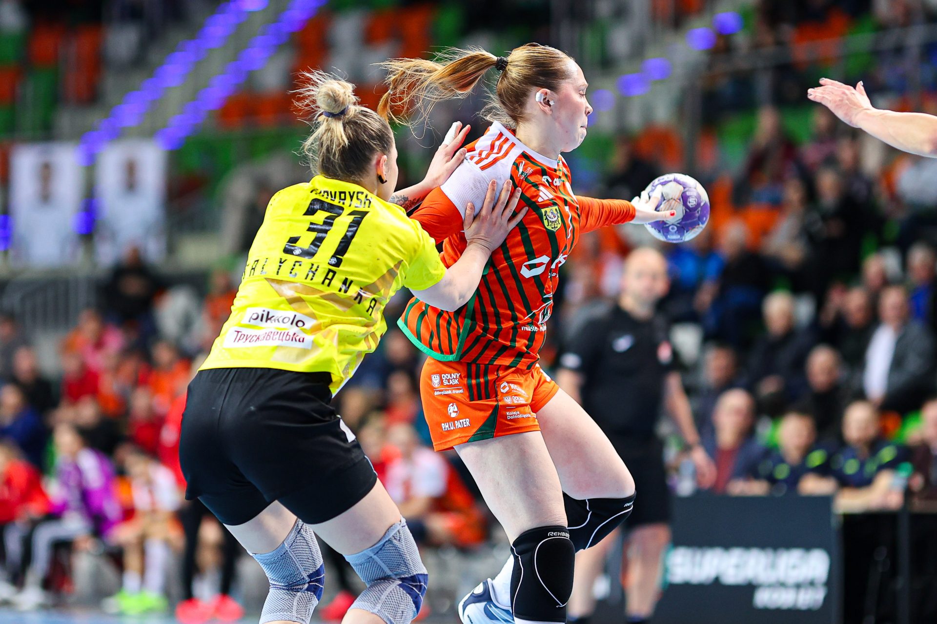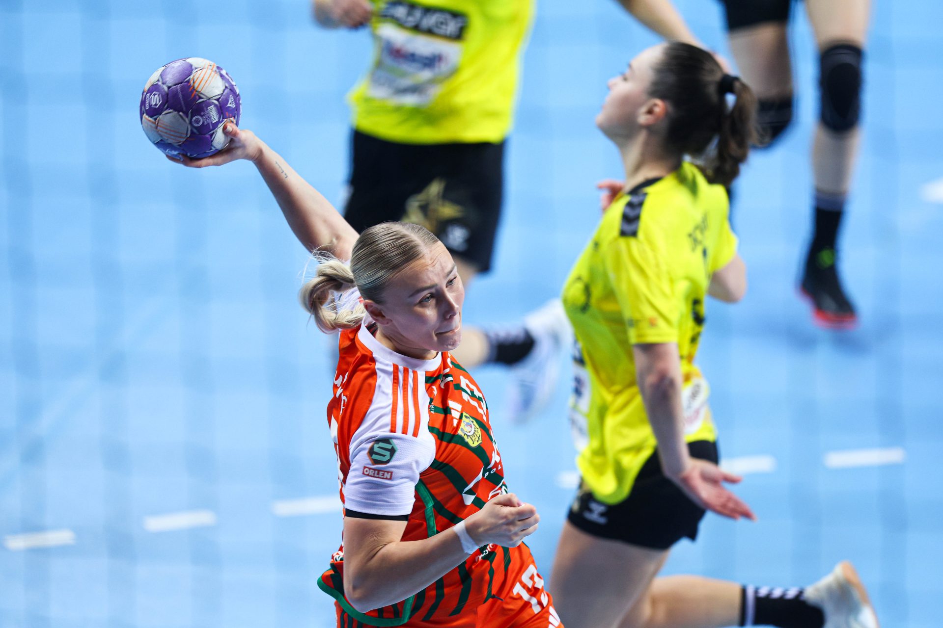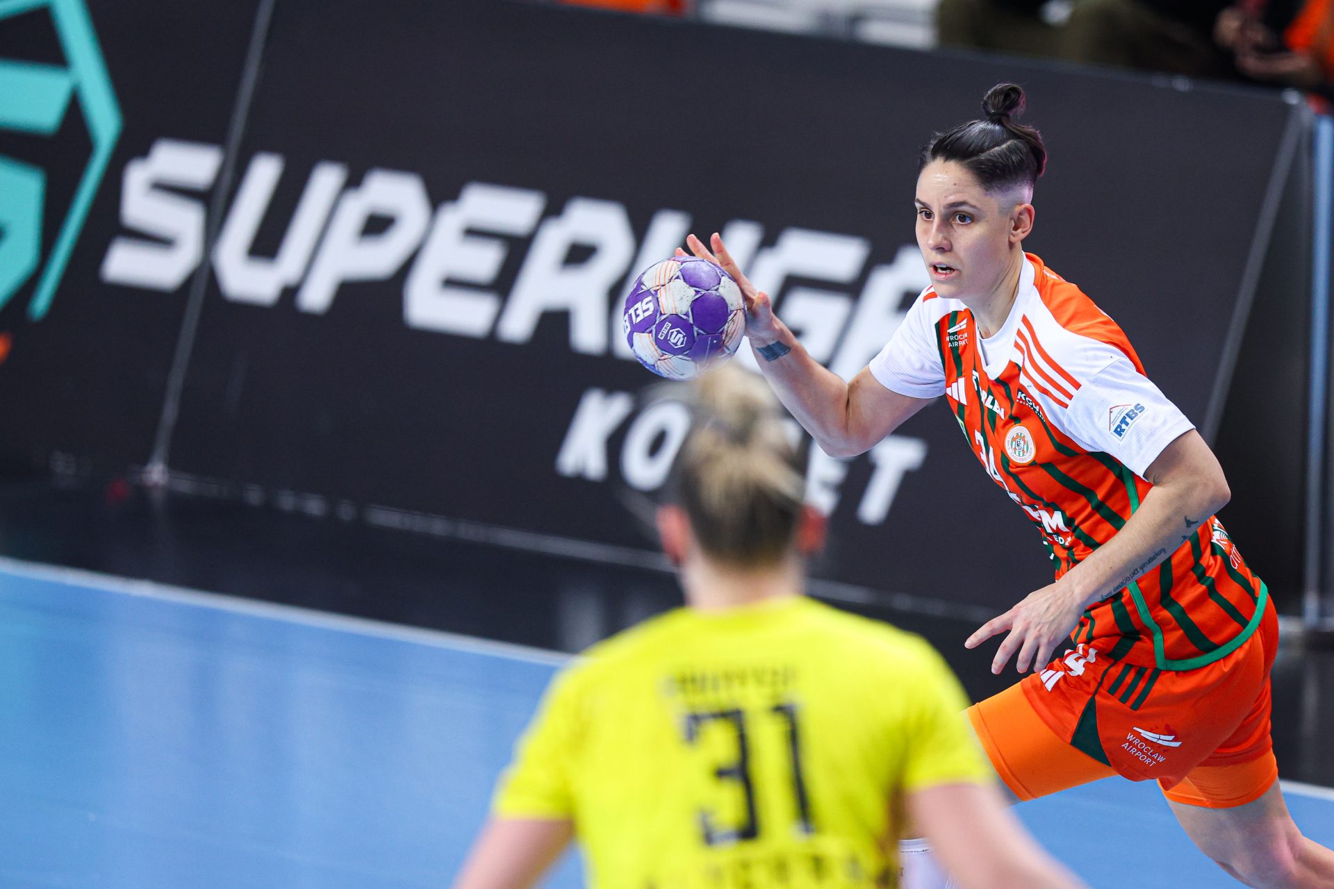 Po zmianie stron dominacja zespołu z Lubina nie podlegała już żadnej dyskusji. Miedziowe grały z dużą swobodą i pewnością siebie, w pełni kontrolując tempo gry oraz przebieg spotkania. Z każdą kolejną akcją przewaga mistrzyń Polski rosła, a zespół konsekwentnie wykorzystywał swoje atuty. Na kwadrans przed końcem meczu wynik brzmiał już 26:16, co dobitnie obrazowało różnicę klas pomiędzy obiema drużynami. Lubinianki nie zamierzały jednak zwalniać tempa — bardzo dobra organizacja gry w środkowym sektorze boiska oraz skuteczna ofensywa przynosiły kolejne trafienia. Po raz kolejny ważną rolę na skrzydle odgrywała Kinga Grzyb, która swoją dynamiką i skutecznością sprawiała rywalkom wiele problemów. Pięć minut przed końcową syreną na tablicy wyników widniał rezultat 30:18, a Miedziowe pewnie zmierzały po kolejne przekonujące zwycięstwo przed własną publicznością.