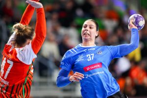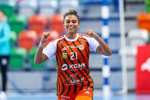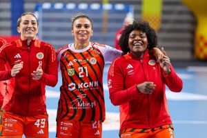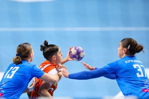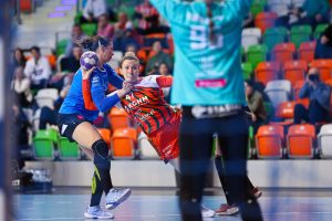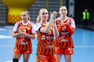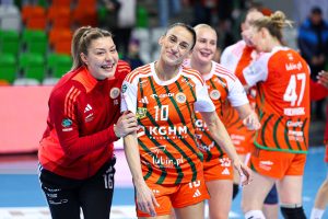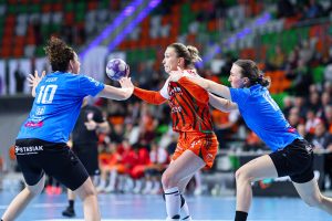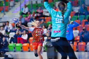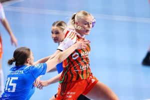 Z minuty na minutę lubinianki prezentowały się coraz pewniej. Dobra organizacja w obronie i skuteczność w ataku pozwoliły im zdobyć pięć bramek z rzędu, co przełożyło się na wyraźne prowadzenie 10:5. Od tego momentu przewaga KGHM Zagłębia systematycznie rosła, a rywalki miały coraz większe problemy ze sforsowaniem defensywy Miedziowych. Do przerwy gospodynie prowadziły już wyraźnie 17:10, a najskuteczniejszą zawodniczką pierwszej połowy była Karolina Kochaniak, która zdobyła pięć bramek.