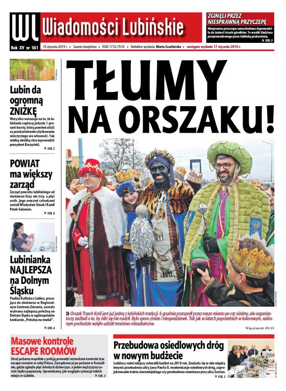To będzie pierwszy numer w tym roku – już jutro (10 stycznia) ukażą się „Wiadomości Lubińskie”, w których znajdziecie między innymi obszerną relację z lubińskiego Orszaku Trzech Króli.