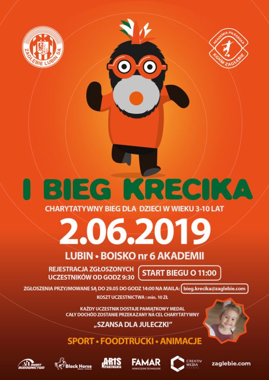 2 czerwca 2019 roku KGHM Zagłębie Lubin zaprasza na pierwszą odsłonę Biegu Krecika. Na linię startu mają stanąć dzieci w przedziale wiekowych 3-10 lat.