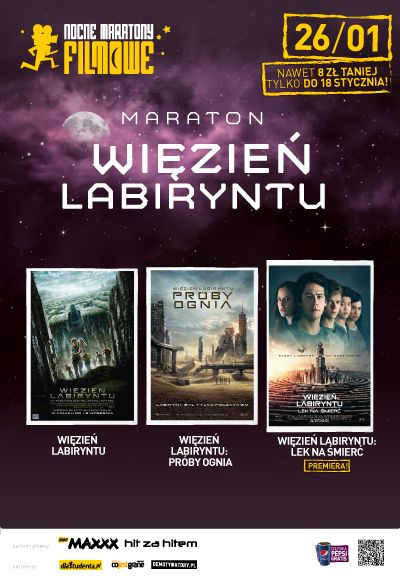 Maraton rozpocznie się 26 stycznia o godzinie 23, a zakończy następnego dnia nad ranem. Na początku wyświetlony zostanie film „Więzień labiryntu”, później „Więzień labiryntu: Próby ognia”, a na końcu premierowo – „Więzień labiryntu: Lek na śmierć”.