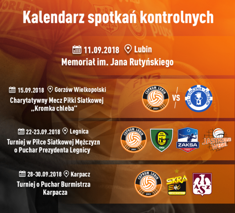 W planach jest także wzięcie udziału w imprezie w Karpaczu, gdzie w dniach 28-30.09.2018 Cuprum powalczy w Turnieju o Puchar Burmistrza Karpacza, m. in. z PGE Skra Bełchatów i Indykpol AZS Olsztyn.