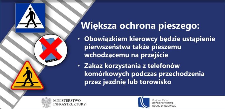 Pieszy, który dopiero zbliża się do „zebry” będzie miał obowiązek przepuścić tylko tramwaj. Podczas przechodzenia przez jezdnię nie będzie mógł korzystać z telefonu komórkowego, tabletu lub innego urządzenia, które ogranicza możliwość prawidłowej oceny otoczenia.