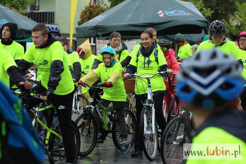 Pomimo deszczowej pogody nie brakowało chętnych rowerzystów i piechurów, żeby wziąć udział w dwudziestym przejeździe ulicami miasta oraz ósmym już spacerze po parkach Lubina. Na drugą inicjatywę zdecydowało się 15 osób, a najmłodsi uczestnicy mieli 5 i niespełna dwa lata.