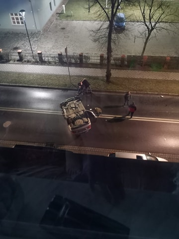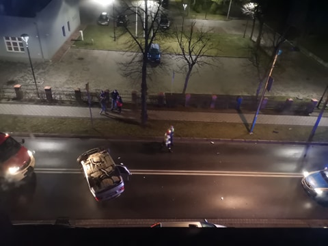 Drugi nieodpowiedzialny kierowca przy ul. Odrodzenia uderzył w latarnię i znaki drogowe, a następnie wylądował na dachu. O zdarzeniu policję powiadomili mieszkańcy tej ulicy, których obudził huk w środku nocy.