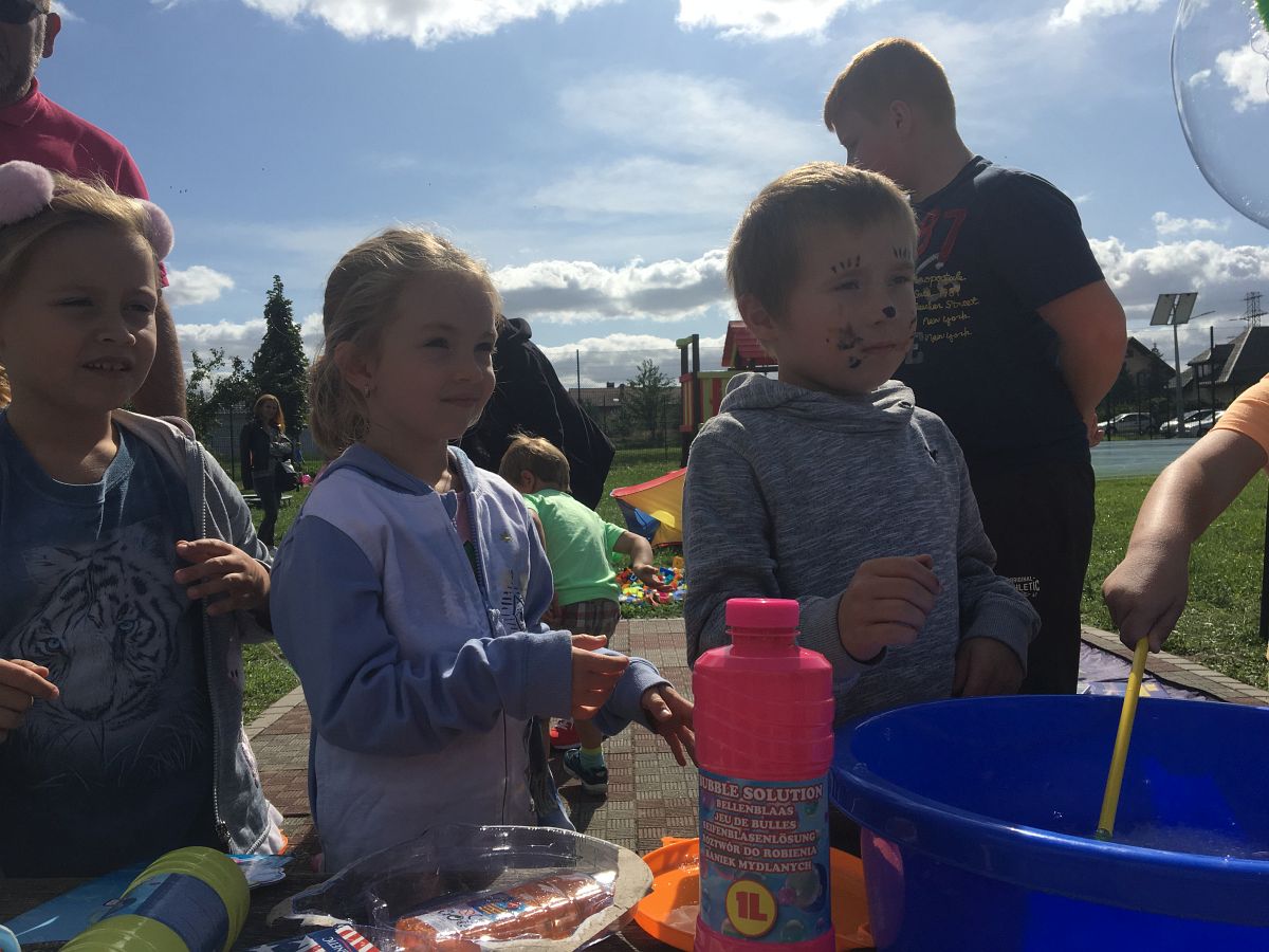 Piknik obfitował w liczne atrakcje: przejażdżka koniem, prezentacja umiejętności psa terapeuty, pokaz sprzętu straży pożarnej, malowanie twarzy, puszczanie baniek mydlanych, różne gry i zabawy ruchowo-sportowe oraz tańce integracyjne, a to wszystko przy dźwiękach muzyki w radosnej atmosferze.