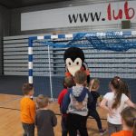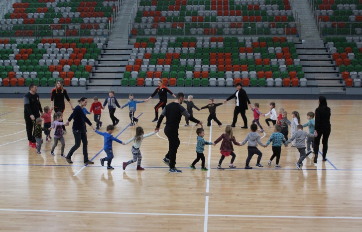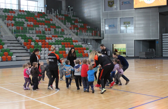 Dzieci najpierw zwiedzały halę, później była lekcja WF-u. Zajęcia prowadzili zawodnicy Zagłębia Lubin Michał Stankiewicz i Łukasz Kużdeba oraz szczypiornistki Metraco Zagłębia Lubin Małgorzata Mączka i Małgorzata Buklarewicz. W prowadzeniu lekcji pomagał oczywiście Krecik.