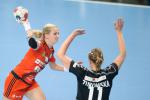 Mecz rozpoczął się od szybkiego 2:0 dla miedziowych, po bramkach Sanji Premović i Zany Marić. Lubinianki nie wykorzystały kolejnych szans na podwyższenie wyniku, za to przyjezdnym udało się zdobyć dwie bramki z rzędu i mieliśmy remis. Kolejne fragmenty gry należały do Joanny Obrusiewicz, która w kilkadziesiąt sekund dwukrotnie pokonała bramkarkę gości. Lubinianki nie potrafiły jednak odskoczyć na wyraźniejszą przewagę i dość niespodziewanie po niespełna dwudziestu minutach gry mieliśmy remis po 7. Po trafieniu Martyny Żukowskiej przyjezdne wyszły na prowadzenie, ale chwilę później wygrywały już podopieczne Bożeny Karkut. Wyrównana pierwsza połowa zakończyła się wynikiem 14:12 dla miedziowych.