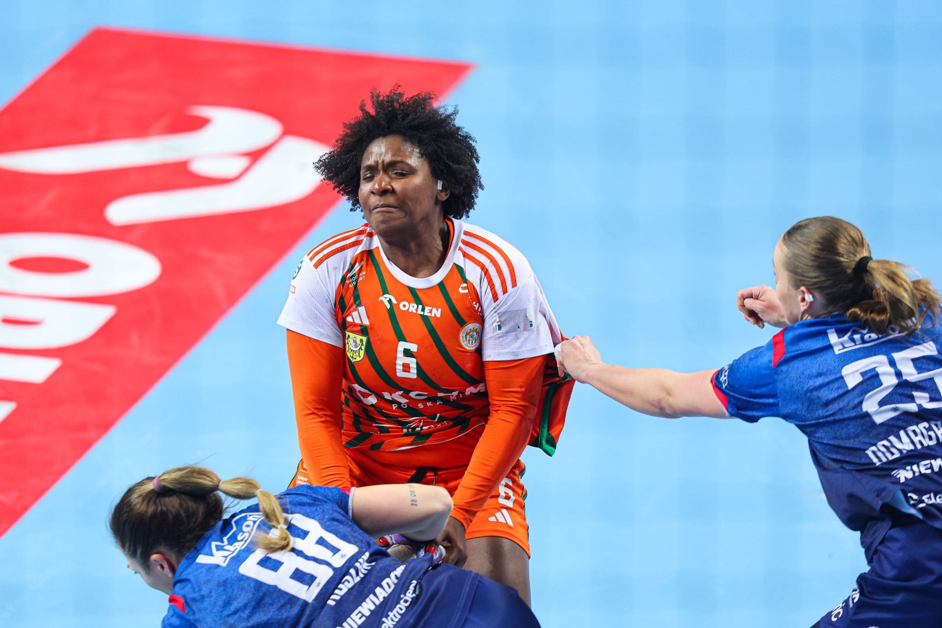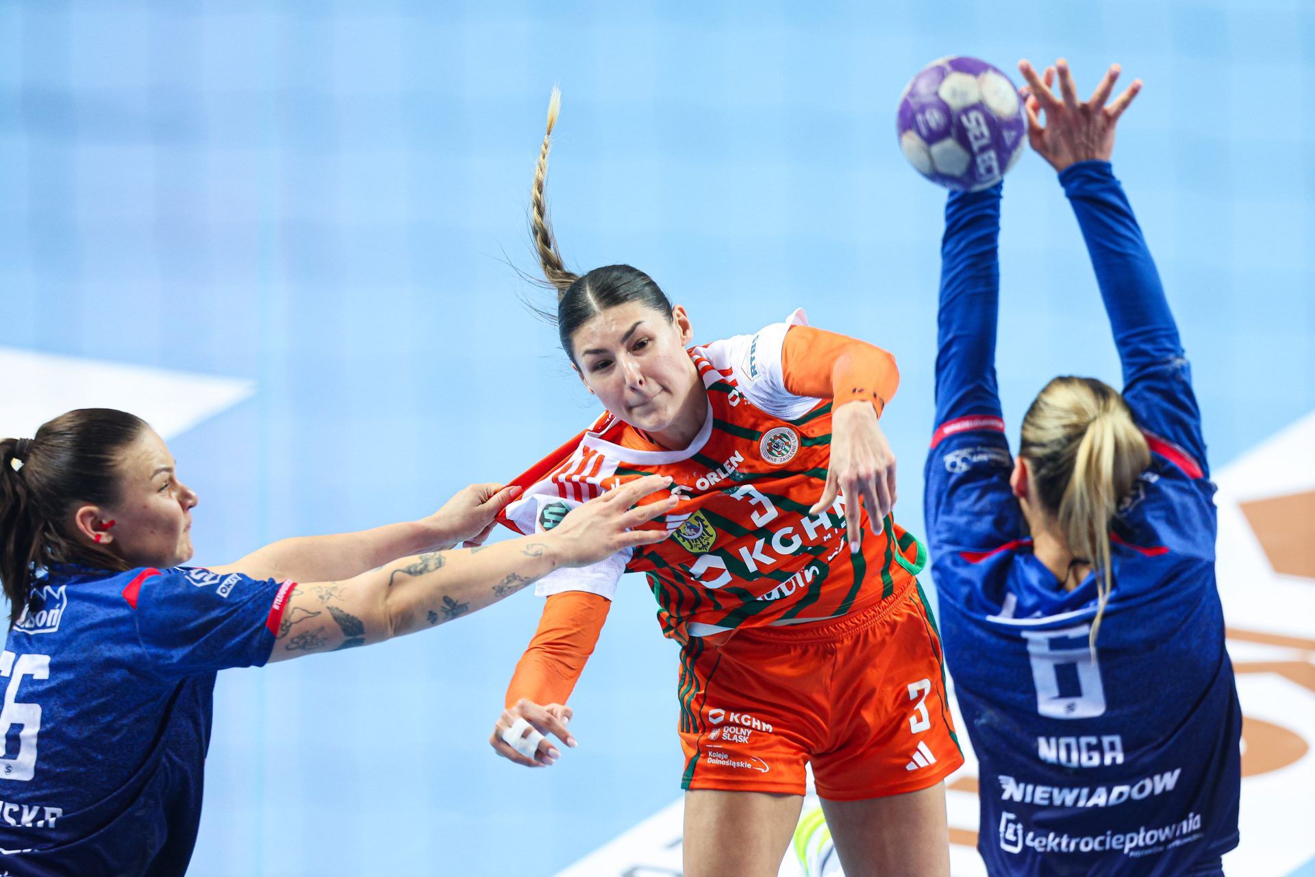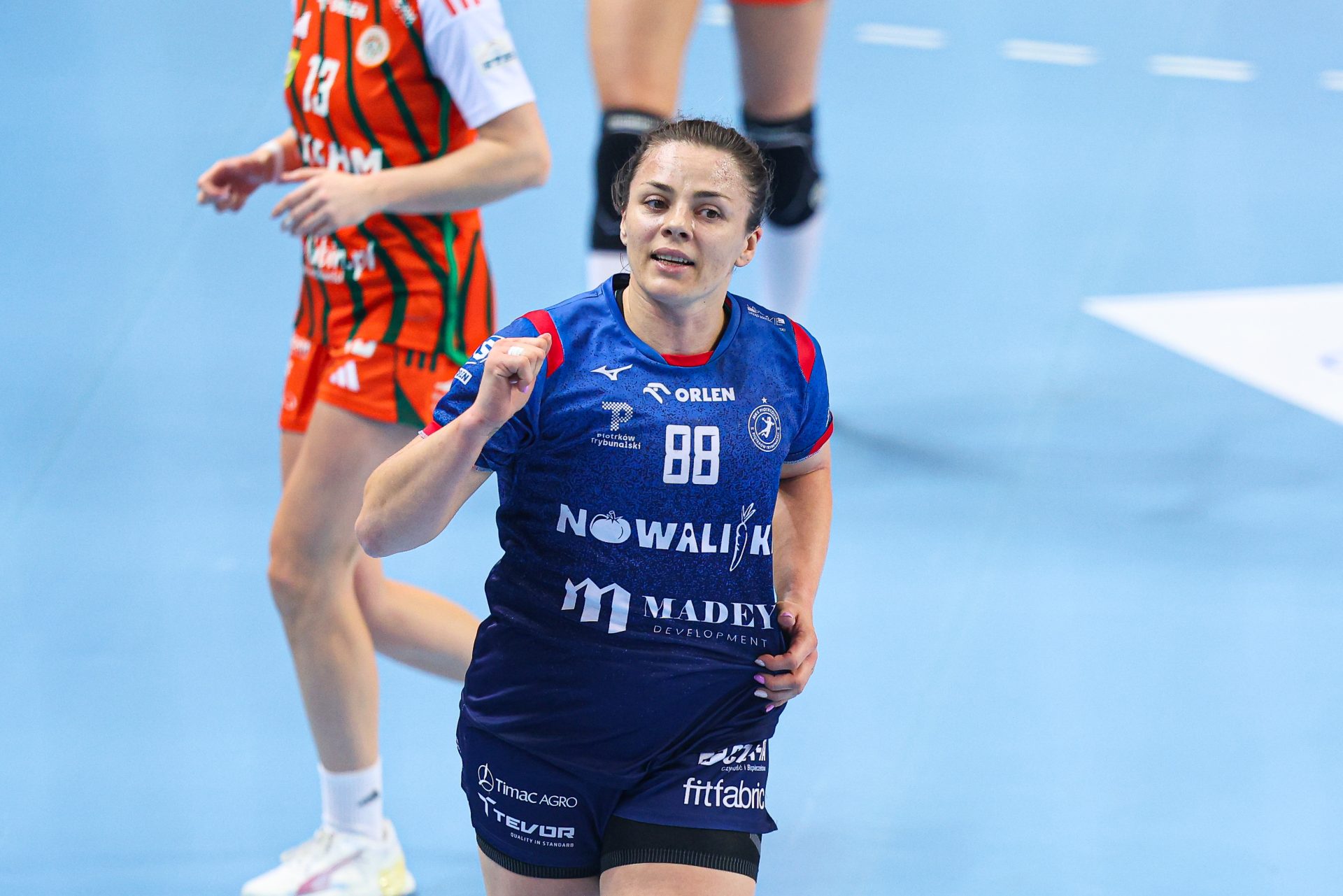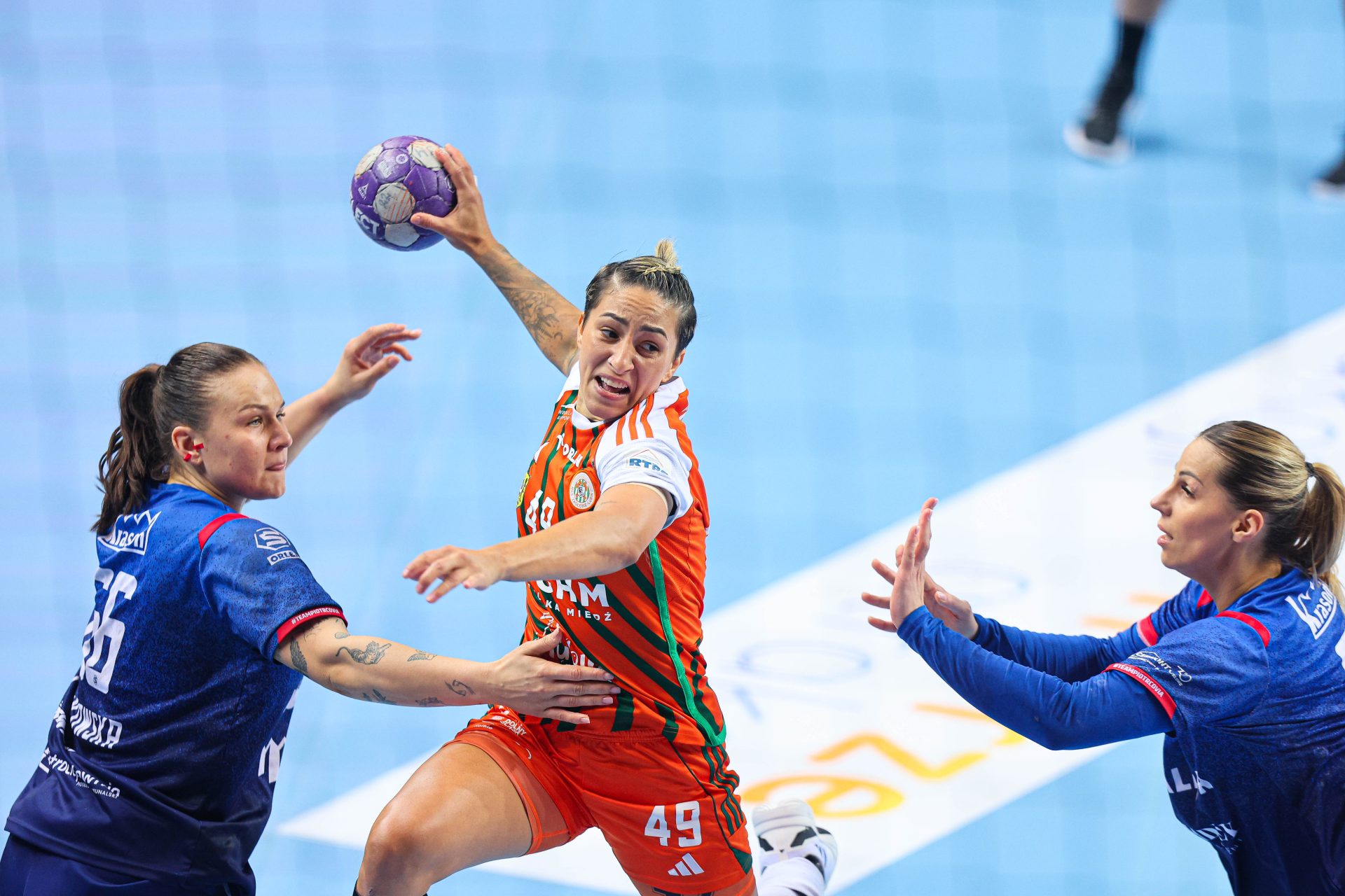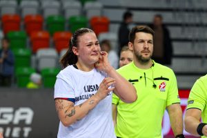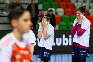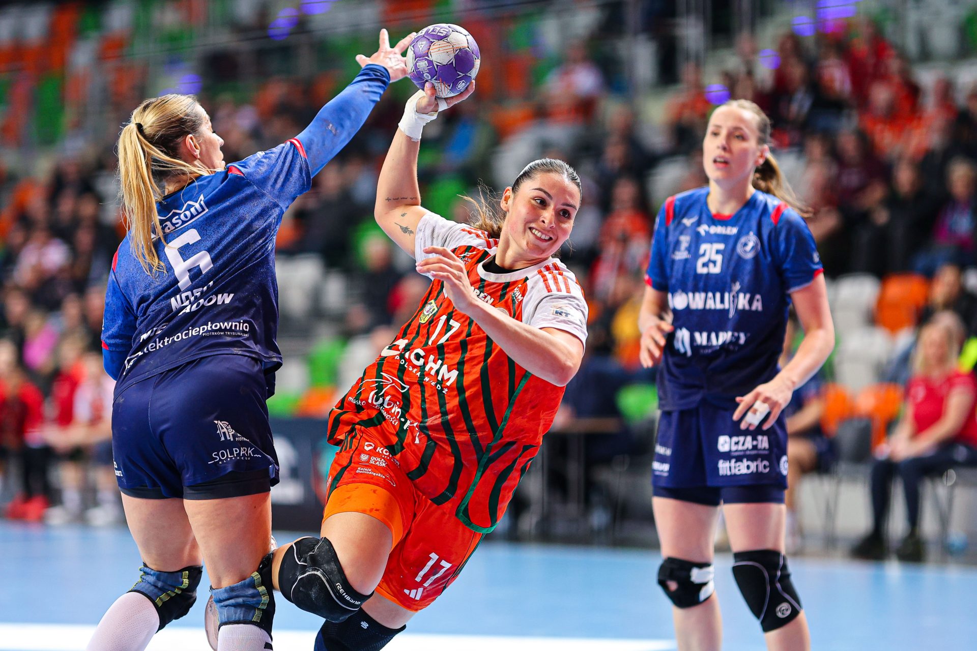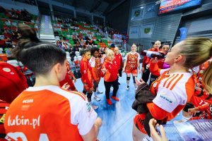 Początek drugiej połowy to tylko jedno trafienie Miedziowych przy trzech bramkach piotrkowianek, które powiększyły przewagę do siedmiu goli. Czas mijał, a lubinianki długo nie potrafiły znaleźć drogi do siatki – niemoc strzelecką przełamała dopiero z rzutu karnego Karolina Kochaniak. Niestety, to właśnie „siódemki” pozostawały największym problemem mistrzyń Polski. Na osiem minut przed końcem na tablicy wyników widniał rezultat 16:23, który praktycznie przesądzał o losach spotkania.