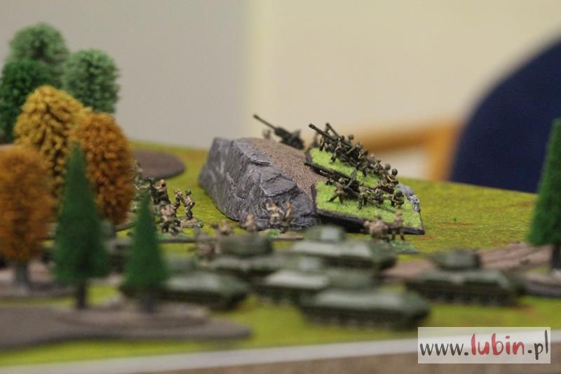 Ekipa Bastionu Głogów prezentowała w CK Muza figurkową grę bitewną Flames of War. – Przyjechaliśmy tutaj, aby pokazać grę bitewną osadzoną w realiach drugiej wojny światowej. Gra odbywa poprzez działania figurkami w skali 1:100 mm, czyli każda figurka jest mniej więcej sto razy mniejsza, jak w rzeczywistości. Zazwyczaj nie prowadzimy scenariuszy bitew, które faktycznie się odbyły, choć odtwarza się wydarzenie z Lądowania w Normandii. We Wrocławiu miała miejsce taka gra zwłaszcza, że rocznica D-Day niedawno minęła. Teraz w Zielonej Górze również odbędzie się niebawem jedna z bitew kampanii wrześniowej właśnie w formie figurkowej. Co do zasady to ogólnie gra logiczna i umieszczona jest w czasie drugiej wojny światowej, ale nie odtwarzamy faktycznych wydarzeń, byłoby to zbyt skomplikowane – podkreśla Marcin Szymankiewicz, członek klubu z Głogowa.