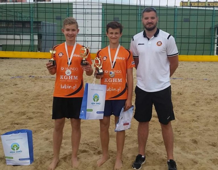 Młodzicy Cuprum Lubin, Paweł Andrzejewski oraz Mateusz Rogalski zdobyli wicemistrzostwo Dolnego Śląska w piłce siatkowej plażowej.