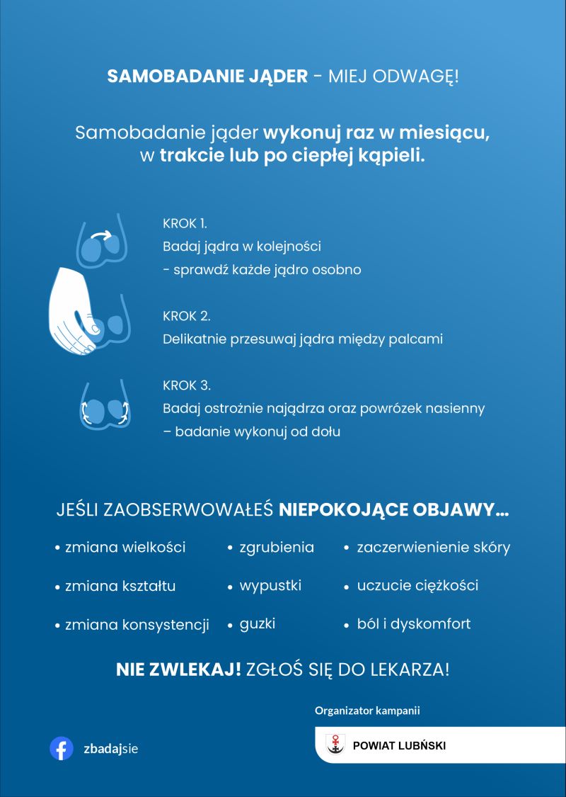 Powiat lubiński zachęca wszystkich mieszkańców, by włączyli się w promowanie akcji i nakłanianie panów do dbania o siebie oraz wykonywania badań, poprzez nałożenie na swoje zdjęcie w mediach społecznościowych dedykowanej nakładki. Można ją otrzymać pisząc na maila k.dubinski@powiat-lubin.pl.