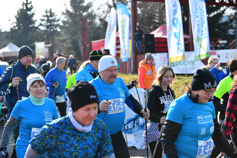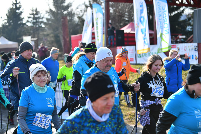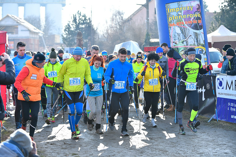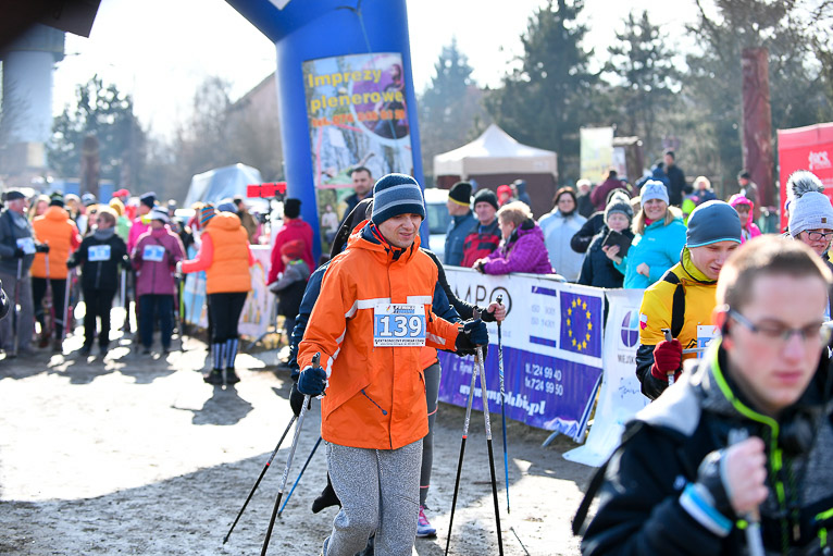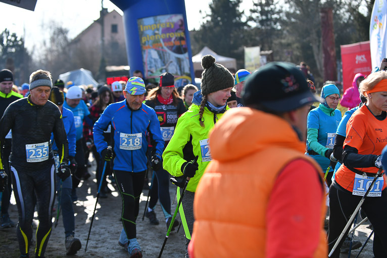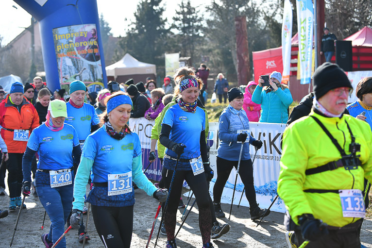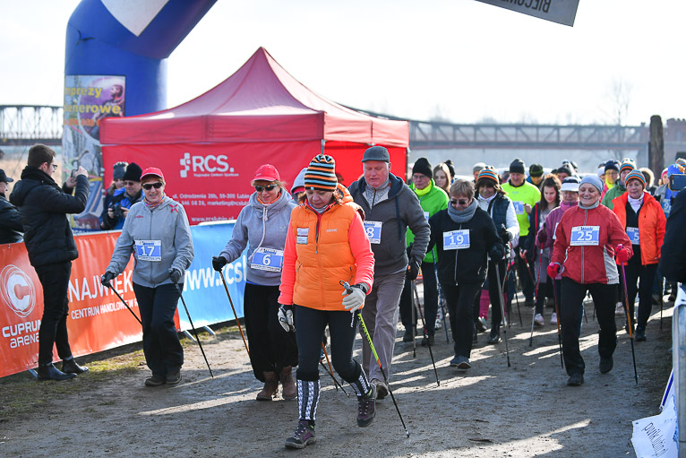Po rywalizacji biegaczy na starcie pojawili się zawodnicy nordic walking. Wśród nich tradycyjnie polkowicka grupa prowadzona przez Bogdana Grygorowicza. – Tą imprezą nasza grupa zawsze zaczyna sezon. Przyjechaliśmy tutaj bardzo mocnym składem ale rywalizujemy w ramach silniejszego treningu oraz spotkania się z ludźmi, którzy są aktywni i nakręceni sportowo. Jesteśmy zawsze zadowoleni z tej imprezy, bo jest super zorganizowana. – mówił Bogdan Grygorowicz, trener nordicowców Metraco Polkowice.