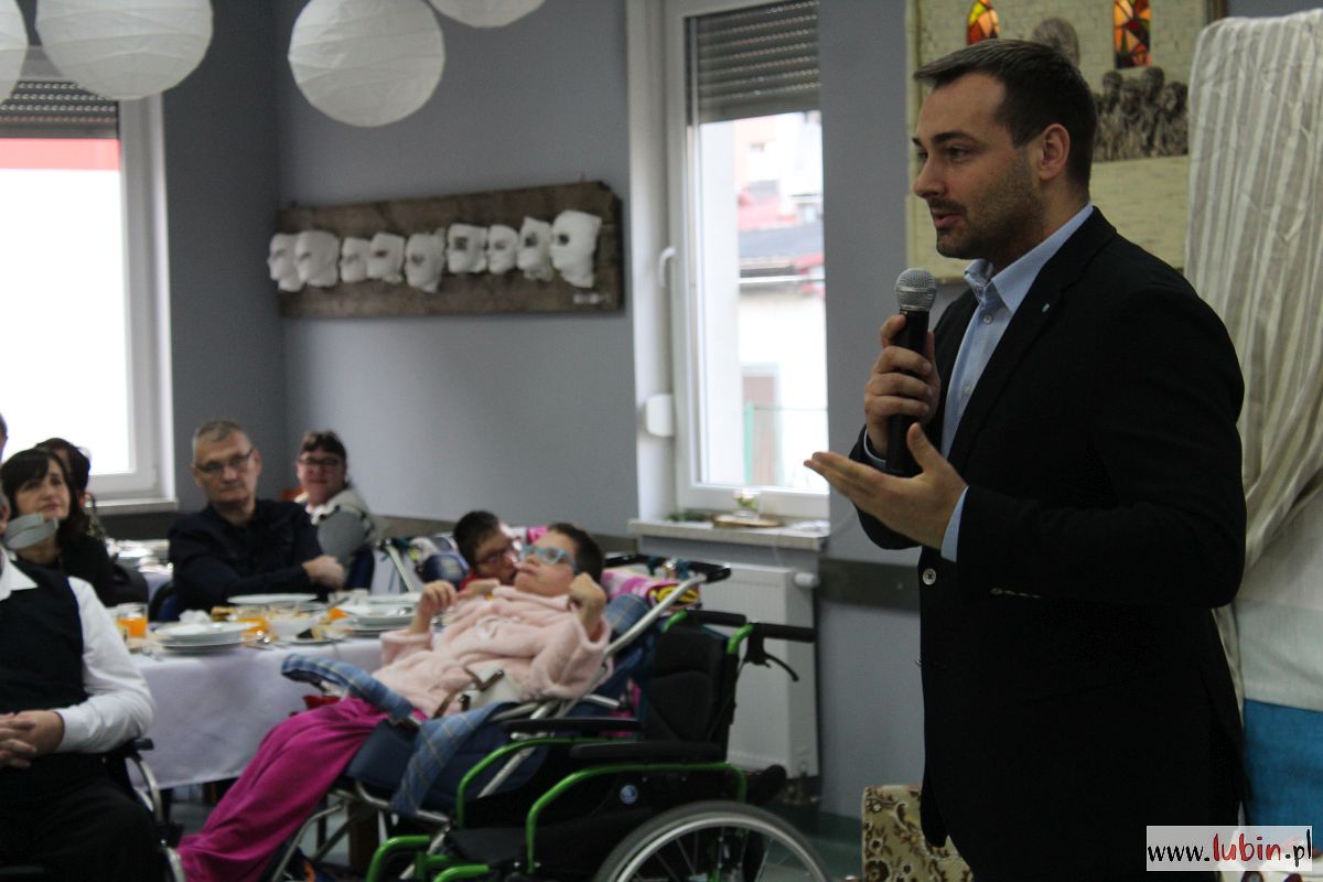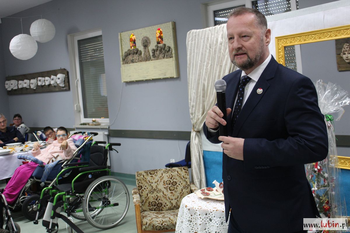 – Najważniejsze jest wzajemny szacunek i miłość, a te zbliżające się święta przypominają nam o tym. Zarówno w naszych domach rodzinnych, jak i w naszym życiu społecznym ten okres świąteczny zawsze skłania do pewnych refleksji, zadumy i spojrzenia w przeszłość, co zrobiliśmy, co osiągnęliśmy, jak odnosiliśmy się do innych. Cieszę się, że już ósmy rok trwa nasz Ośrodek Słoneczko i Promyk, że po raz kolejny możemy spotkać się na wigilii z osobami niepełnosprawnymi, dla których jest to bardzo ważne – mówi Tomasz Górzyński, wiceprzewodniczący lubińskiej rady miejskiej.