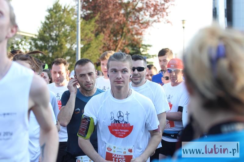 Przed biegiem głównym nastroje wśród uczestników były wspaniałe. Słoneczna pogoda, uśmiechy na twarzach i wspólna idea, jaką było wspomnienie papieża Polaka. – Chodzi o wspólną zabawę. Ważne, że biegamy razem. Podczas biegu jest sporo przemyśleń o naszym papieżu. To nie jest bieg na wynik, tylko zupełnie inny – mówi Przemysław Brzeziński z grupy Morsy Lubin.