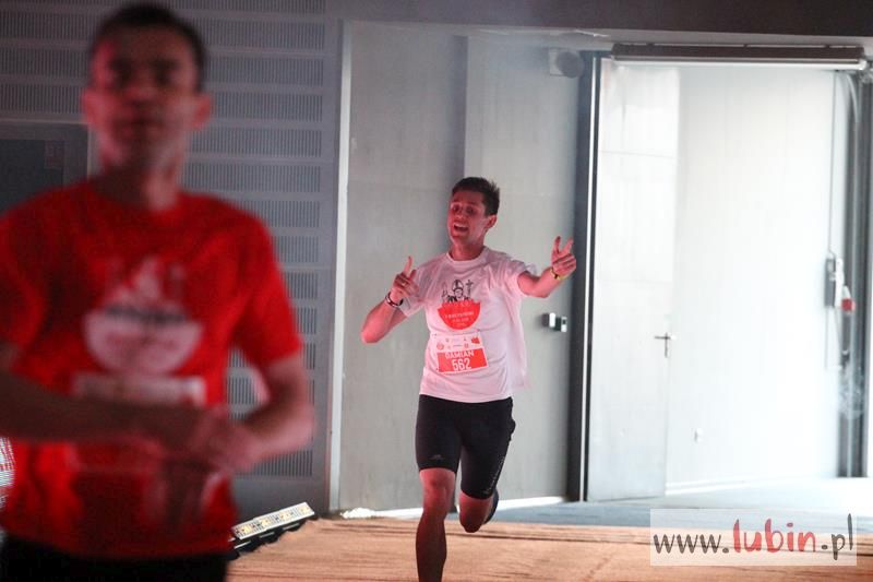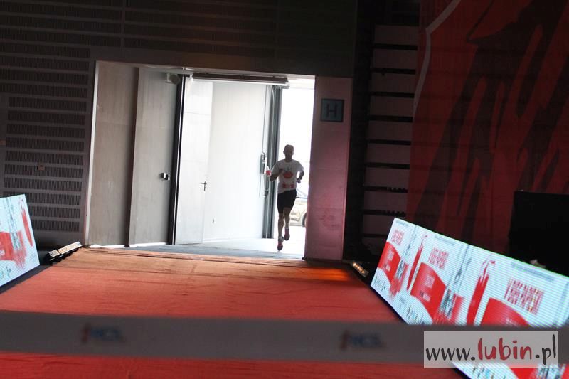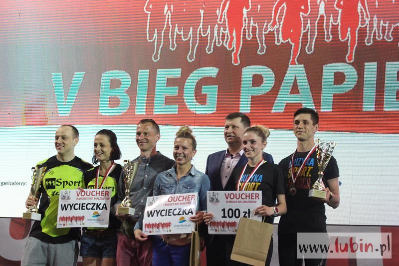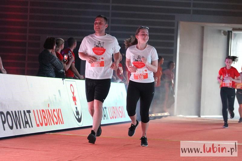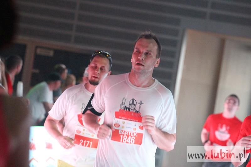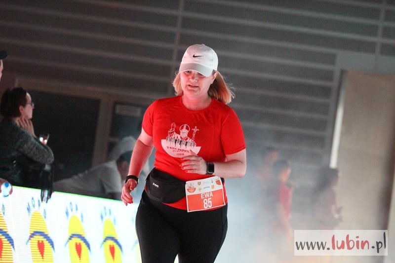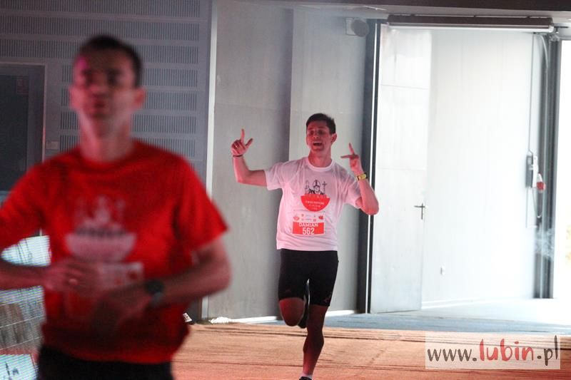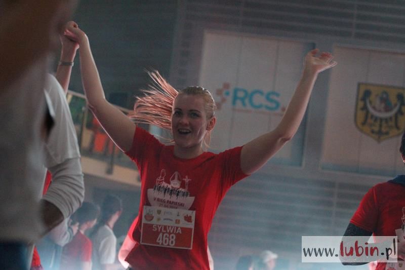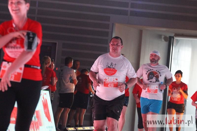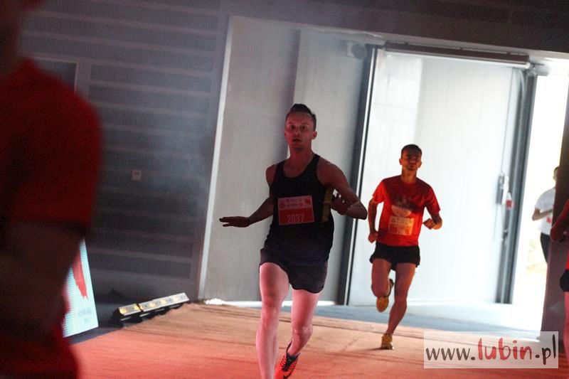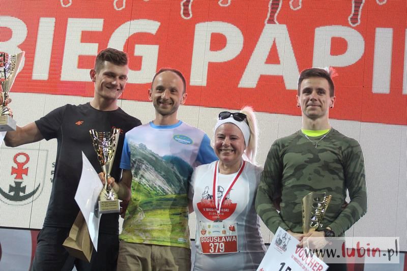 Kończący swoją trasę biegacze, na mecie słyszeli piękne pieśni w wykonaniu podopiecznych Salezjańskiego Liceum Ogólnokształcącego. Pierwszy na mecie był wojskowy, Kamil Makoś reprezentujący Karkonosz Running, który pokonał trasę w ponad czternaście minut. – Jestem szczęśliwy, że udało mi się wygrać piąty bieg. Jestem zawodowym żołnierzem i w sekcji wychowania fizycznego – komentuje pierwszy mężczyzna na mecie, któremu medal wręczył włodarz Lubina.