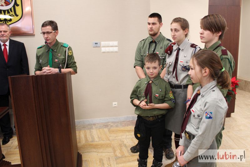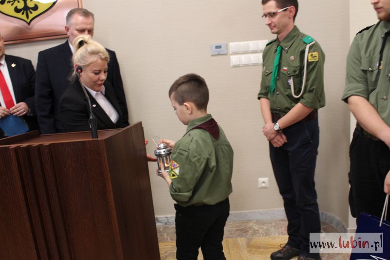 Dziś radni mieli już w ratuszu pierwszych gości – odwiedzili ich harcerze z lubińskiego ZHP, którzy przyszli ze swoim komendantem – Łukaszem Nowickim – i przynieśli Betlejemskie Światełko Pokoju. Były życzenia płynące z obu stron i symboliczne prezenty od radnych dla harcerzy i zuchów.