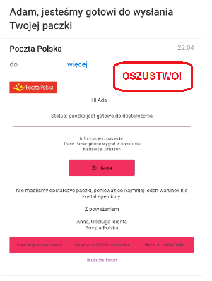 – Poczta Polska nie jest inicjatorem tych kampanii mailowych. Prosimy o czujność i uważne czytanie otrzymanych wiadomości oraz zawartych w niej linków – mówi Justyna Siwek, rzecznik prasowy Poczty Polskiej. – W przypadku otrzymania podejrzanych wiadomości lub w przypadku podejrzenia nieprawidłowości bądź niezgodności prosimy o zgłoszenie sprawy na policję i niezwłoczne poinformowanie nas na adres cyberbezpieczenstwo@poczta-polska.pl lub przez stronę incydent.cert.pl. To nam pozwoli na ostrzeżenie naszych klientów, a także zablokowanie fałszywej strony – apeluje rzeczniczka.