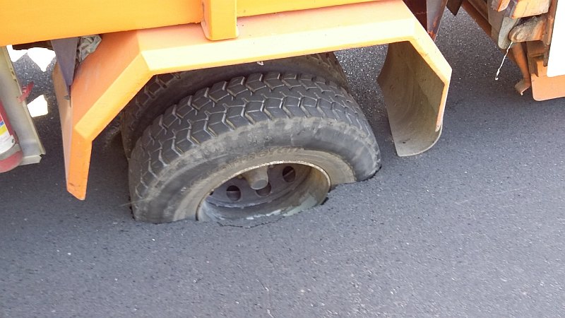 Zdjęcie koła śmieciarki, pod którym zapadł się fragment drogi, wysłał nam na maila jeden z mieszkańców ulicy Tarnopolskiej. Gdy samochód odjechał, w jezdni pozostała spora dziura. Mimo obaw mieszkańców, urzędnicy zapewniają, że otwór został zabezpieczony i nie będzie się powiększał.