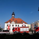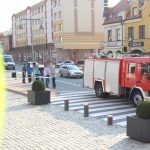 Policja zabezpieczyła teren przy fasadzie Ratusza od strony ul. Mieszka I i Odrodzenia. Funkcjonariusze pilnują, by nikt nie podchodził. Na miejsce wezwano też straż pożarną i ekipę pirotechników.