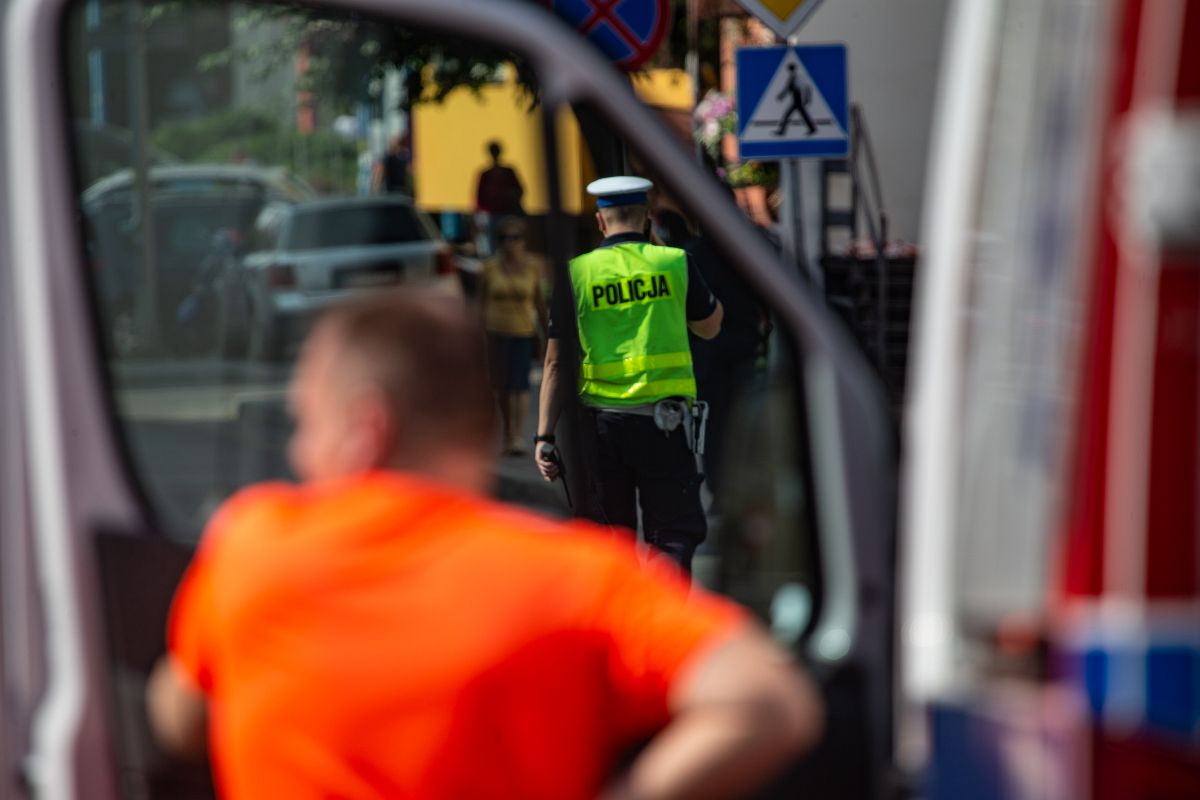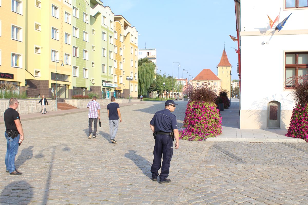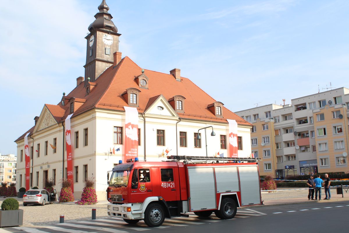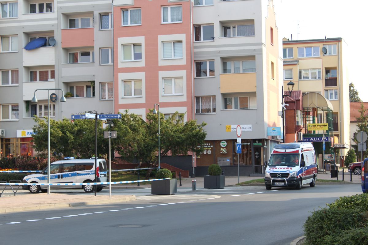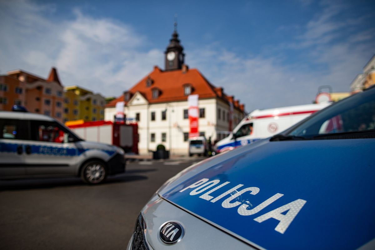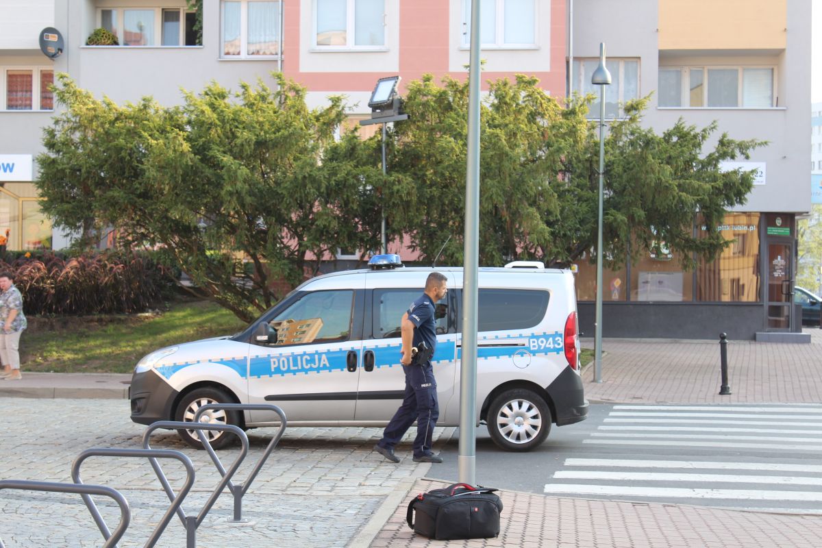 Policja zabezpieczyła teren przy fasadzie Ratusza od strony ul. Mieszka I i Odrodzenia. Funkcjonariusze pilnują, by nikt nie podchodził. Na miejsce wezwano też straż pożarną i ekipę pirotechników.