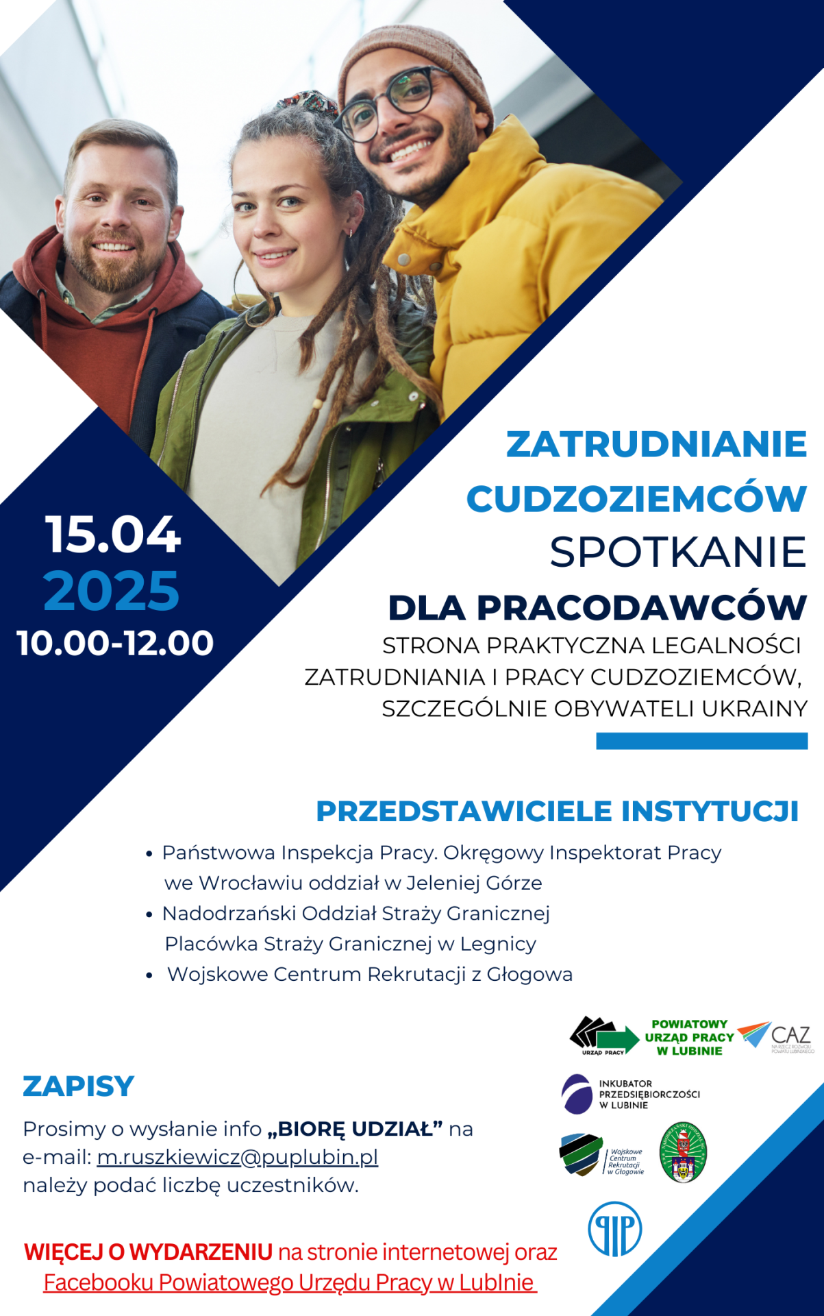 Aby wziąć udział w spotkaniu, należy wysłać maila z treścią „TAK” na adres: m.ruszkiewicz@puplubin.pl .