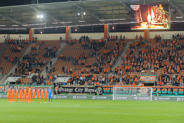 Zanim spotkanie doszło do skutku, wszyscy zebrani na Stadionie Zagłębia uczcili minutą ciszy zmarłych górników z ZG Polkowice-Sieroszowice.