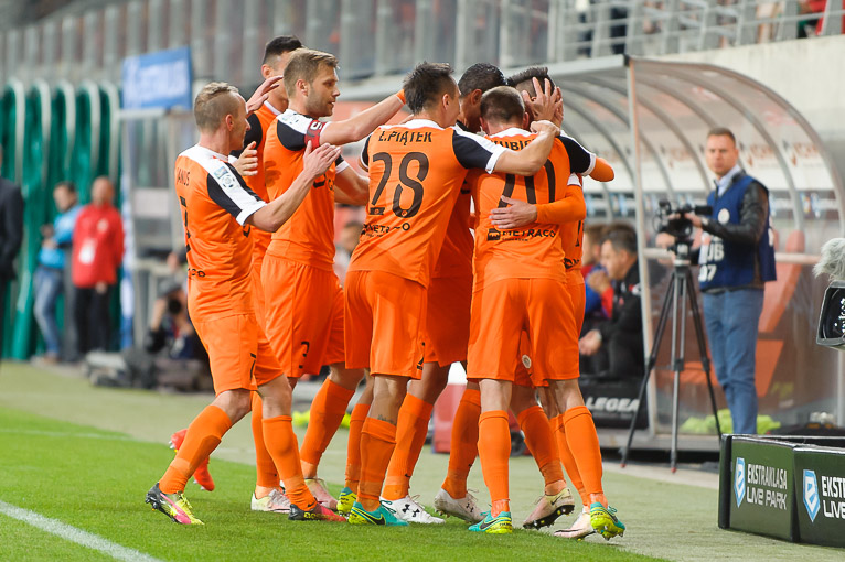 Cracovia: 29. Grzegorz Sandomierski – 7. Jakub Wójcicki, 22. Piotr Malarczyk, 24. Piotr Polczak, 2. Tomasz Brzyski – 20. Mateusz Szczepaniak (66, 62. Erik Jendrišek), 14. Damian Dąbrowski, 5. Miroslav Čovilo, 27. Marcin Budziński, 99. Krzysztof Piątek (87, 9. Tomáš Vestenický) – 10. Mateusz Cetnarski (82, 11. Mateusz Wdowiak).