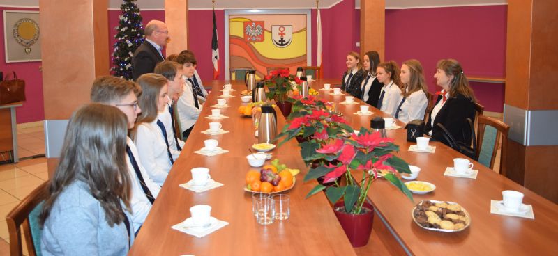 Starosta lubiński spotkał się z uczniami Gimnazjum nr 4 im. Jana Pawła II w Lubinie, żeby podziękować im za zaangażowanie w organizację uroczystości patriotycznej związanej z 35. rocznicą wprowadzenia stanu wojennego w Polsce.
