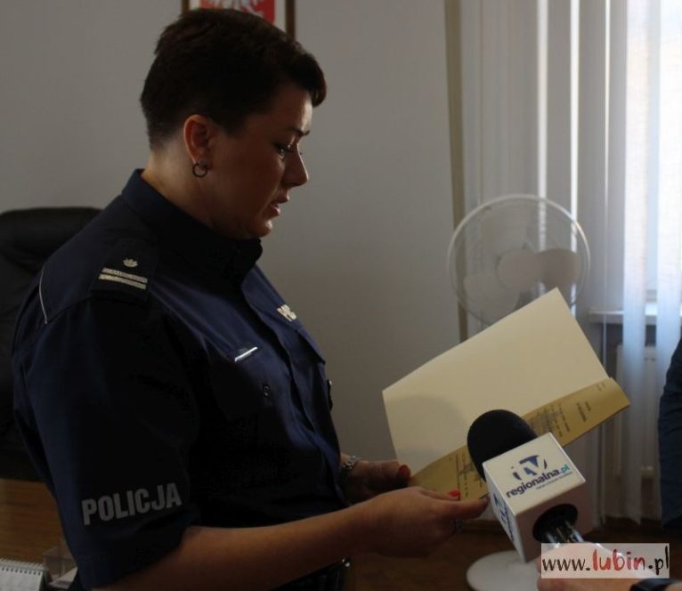 Za obywatelską postawę kobieta otrzymała także suweniry od starosty powiatu lubińskiego. – To dla nas powód do dumy, że wśród mieszkańców powiatu lubińskiego, znajdują się osoby takie jak pani. Życzę wszystkim, aby mieli tyle odwagi i nie bali się reagować oraz wybiegali oczami poza swój ogródek – mówiła w imieniu Adama Myrdy Marta Dykas ze Starostwa Powiatowego w Lubinie.