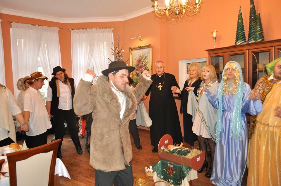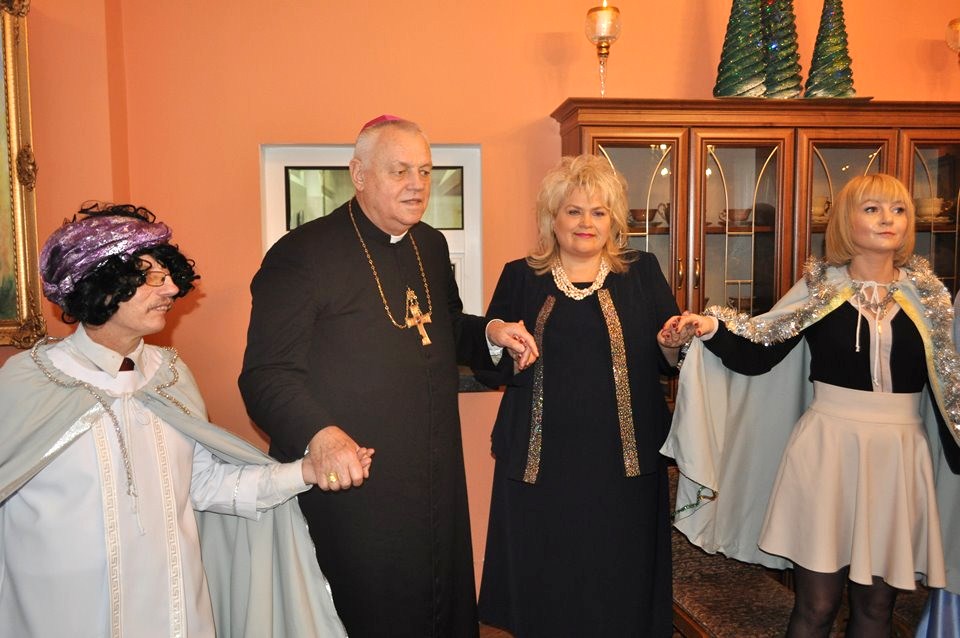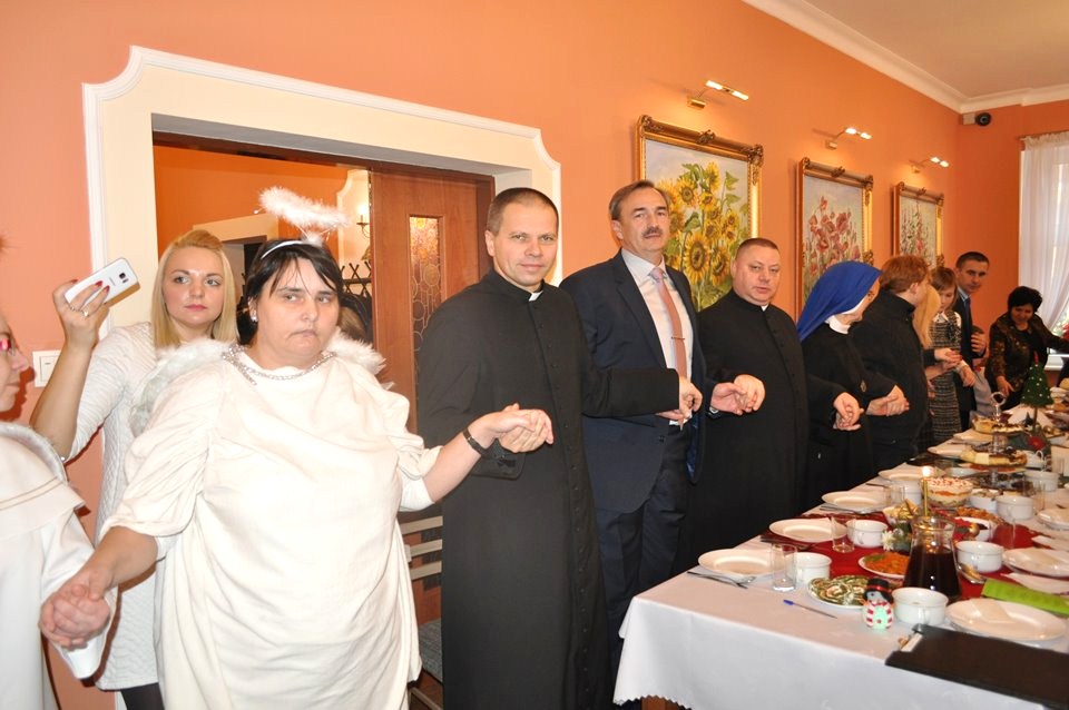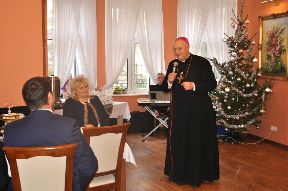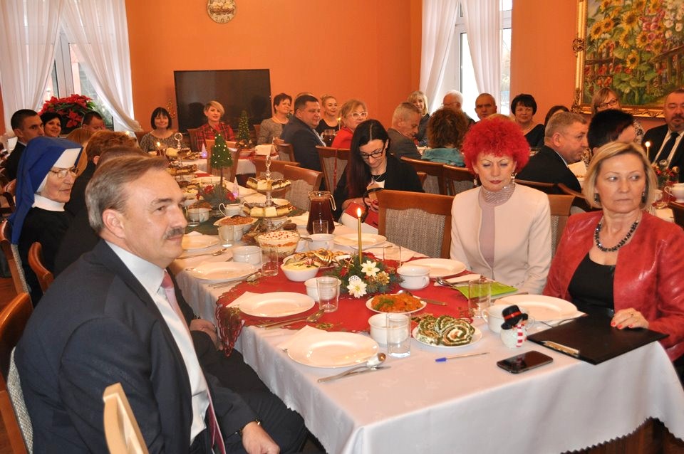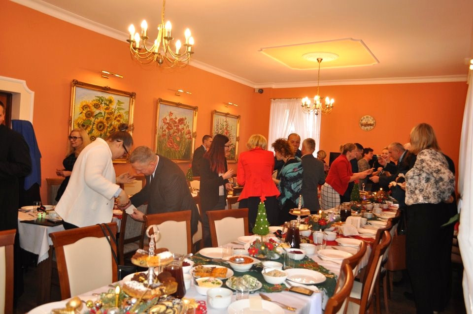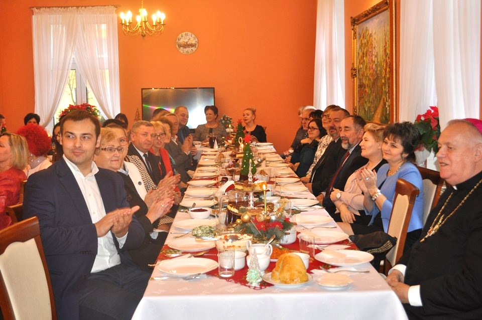 Po krótkich przemówieniach zaproszonych gości, ks. biskup pobłogosławił opłatki, po czym wszyscy obecni złożyli sobie świąteczne życzenia i zsiedli do zastawionego potrawami wigilijnego stołu.