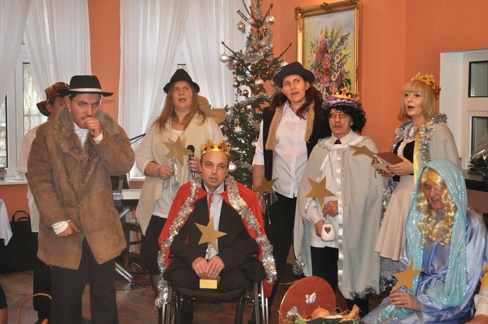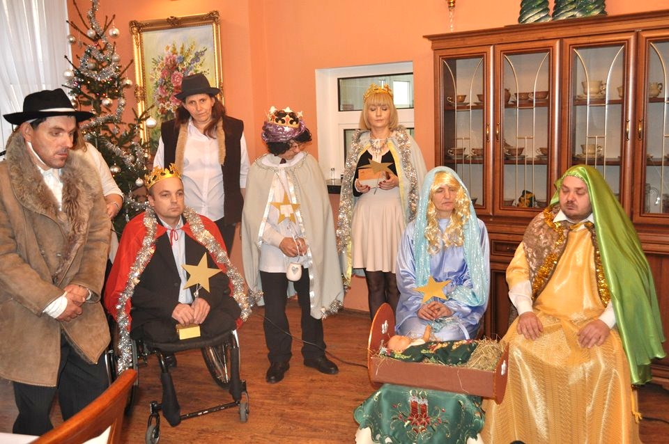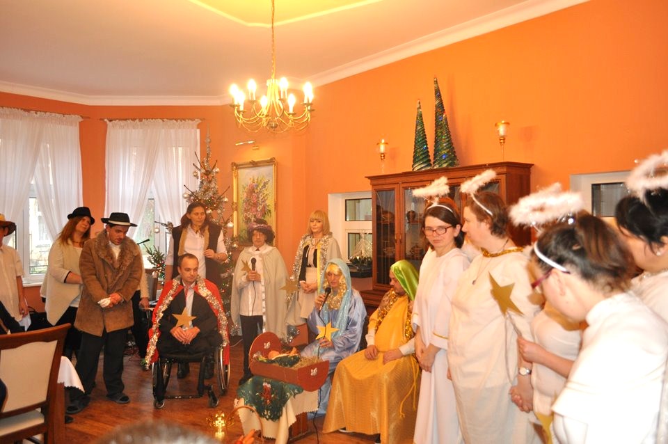 „Przybieżeli do Betlejem pasterze” – tak zaśpiewali uczestnicy Warsztatów Terapii Zajęciowej Uśmiech podczas przedświątecznego spotkania, które odbyło się w siedzibie Fundacji Przystań w Ścinawie.