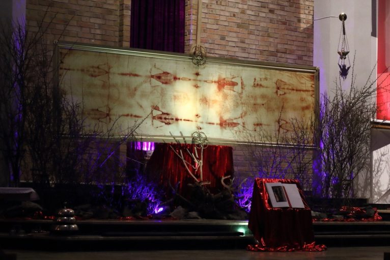 – Chcieliśmy się w ciekawy sposób przygotować do czasu Wielkiego Postu. Dlatego poprosiliśmy pracownię z Grodziska Mazowieckiego o przygotowanie kopii Całunu Turyńskiego. Jest to niemal wierne odwzorowanie oryginału, zachowana została skala, a nawet rodzaj materiału, z którego został wykonany – mówi ks. Mateusz Maleńczuk, wikariusz parafii pw. św. Maksymiliana Marii Kolbego w Lubinie.