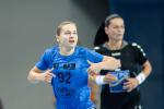 Pogoń zaczęła od mocnego uderzenia i trzech bramek z rzędu. Po niespełna dziesięciu minutach o czas dla swojej drużyny poprosił Ferenc Kovasc. Wówczas wynik brzmiał 6:1 dla Pogoni. Po kwadransie gry przewaga szczecinianek wynosiła już siedem bramek – 11:4. Zespół ze stolicy Austrii w końcu się przebudził i zaczął odrabiać straty. Do przerwy to jednak Pogoń prowadziła dość wyraźnie 16:11.