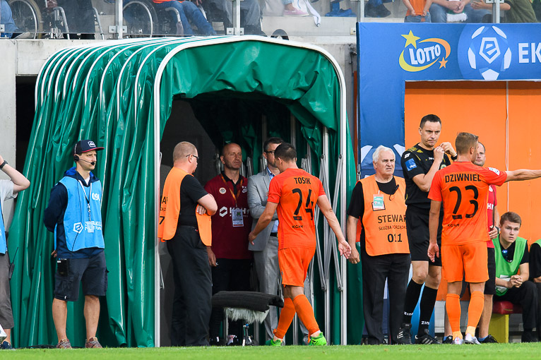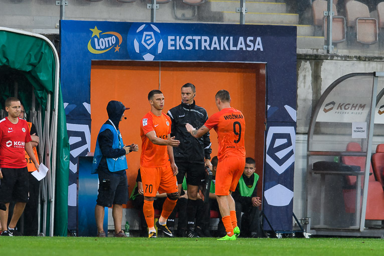 W drugiej połowie na murawie oglądaliśmy Filipa Jagiełło, który zmienił Łukasza Janoszkę oraz debiutanta Bartosza Kopacza, który zastąpił Martina Nespora. Zdeterminowani miedziowi przystąpili do ataku. Pomimo szczuplejszej kadry nie zwalniali tempa. Bliscy zdobycia bramki byli Todorovski czy Woźniak. Ten drugi w 79. minucie oddał silny strzał sprzed pola karnego. Kibice już unosili ręce w geście radości, ale futbolówka minęła poprzeczkę o dobry metr. Kiedy wydawało się, że będzie remis w 90. minucie bramkę zdobył Jakub Świerczok. To wspaniały debiut tego utalentowanego zawodnika. Jednak młodość wzięła górę nad doświadczeniem. Zagłębie pokonało w osłabieniu zespół ze stolicy Dolnego Śląska, 1:0.