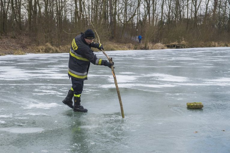 – kiedy zauważymy osobę tonącą, nie biegnijmy w jej kierunku! Pamiętajmy, że pod nami również może załamać się lód. Nie wolno też podchodzić do przerębla w postawie wyprostowanej, ponieważ zwiększamy w ten sposób punktowy nacisk na lód, który może załamać się pod ratującym. Najlepiej próbować podczołgać się do tonącego;