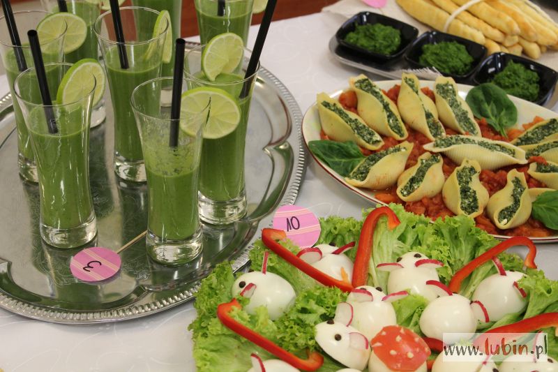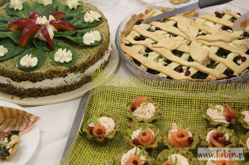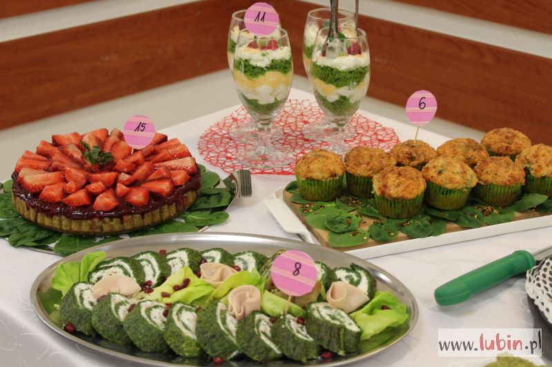 Kucharze wykazali się dużą fantazją. Na stole był przystawki, dania główne, a nawet desery – wszystko to z dodatkiem szpinaku. Koktajle, tarty, zawijańce, ciasta. Trzy pierwsze miejsca otrzymały wagi kuchenne, potrawy wyróżnione – pojemniki śniadaniowe ze sztućcami.