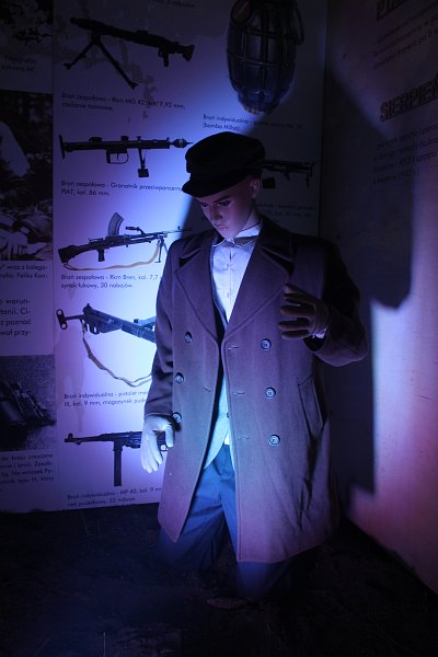 We galerii panuje półmrok. Gdzieniegdzie przebłyskują kolorowe światła. Słychać też odgłosy wystrzałów. Na wystawie znajdziemy wszystko to, co udało się przez ostatnie pół roku wyłuskać pracownikom Wzgórza Zamkowego na temat cichociemnych.