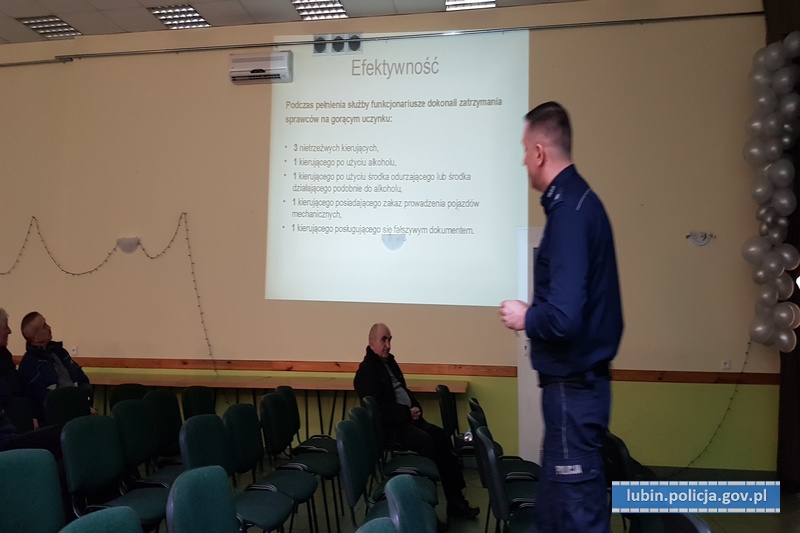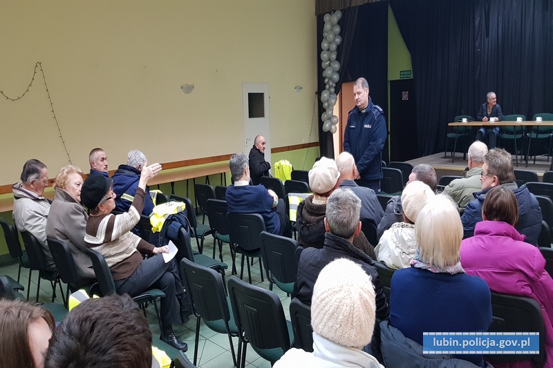 Policjanci spotkali się z mieszkańcami gminy Lubin. Spotkanie miało charakter otwartej dyskusji, służącej wymianie informacji dotyczących głównych zagrożeń widzianych oczami lokalnego społeczeństwa, a także związanych z tym oczekiwań w zakresie poprawy bezpieczeństwa. Wiodącym celem było ukazanie idei „Krajowej Mapy Zagrożeń Bezpieczeństwa”, a także przestrzeganie seniorów przed oszustami. Funkcjonariusze swoją uwagę skupili również na promowanie elementów odblaskowych, poprawiających widoczność osób pieszych.