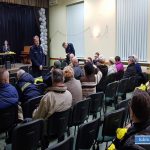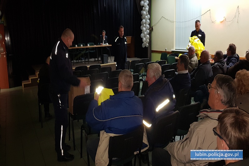 Drugą część spotkania zajęły ostrzeżenia dot. zagrożeń w ruchu drogowym. Policjanci przypominali, o znowelizowanej ustawie Prawo o ruchu drogowym, która nakłada na wszystkie osoby, poruszające się po zmroku w terenie niezabudowanym, obowiązek używania elementów odblaskowych. Na koniec spotkania, wszystkim zgromadzonym rozdano kamizelki odblaskowe.