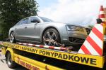 Dokładnie tydzień temu, 4 czerwca, policjanci weszli o świcie na teren pięciu prywatnych posesji i warsztatów samochodowych, gdzie – według nich – miały znajdować się kradzione części i samochody. Jedną z nich była luksusowa rezydencja w pobliskiej Oborze, gdzie – jak informuje Paweł Petrykowski – policjanci zabezpieczyli audi S8 oraz audi A8, które były wyposażone w kradzione części, a także zatrzymali 42-latka podejrzewanego o paserstwo.