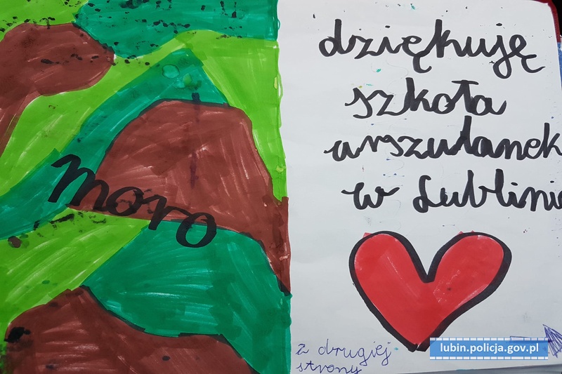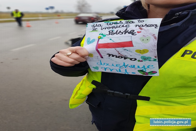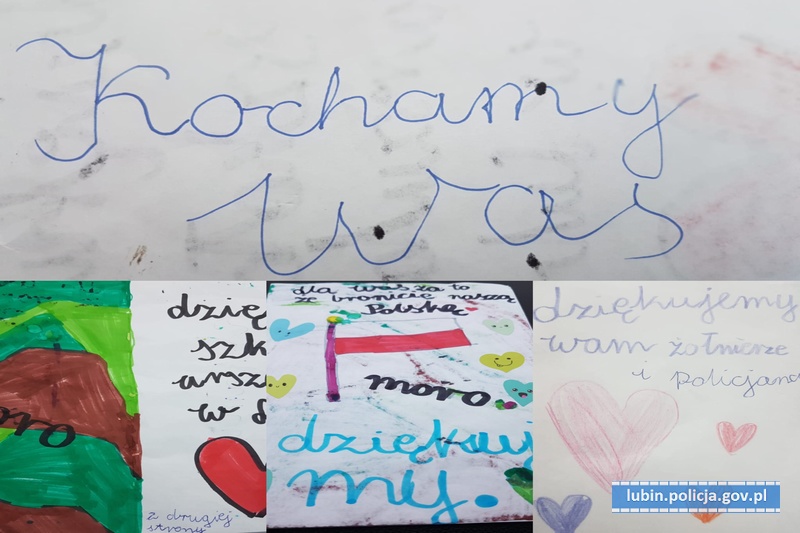„Dla Was, za to, że bronicie naszej Polski”, „Kochamy Was”, czy „Dziękujemy Wam żołnierze i policjanci” – to tylko niektóre wpisy, które znalazły się na laurkach. Ta nietypowa forma podziękowań trafiła do policjantów wydziału ruchu drogowego Komendy Powiatowej Policji w Lubinie, którzy pełnią służbę w rejonie przejścia pogranicza polsko-białorusko-ukraińskiego – informuje asp. sztab. Sylwia Serafin, oficer prasowy KPP Lubin.