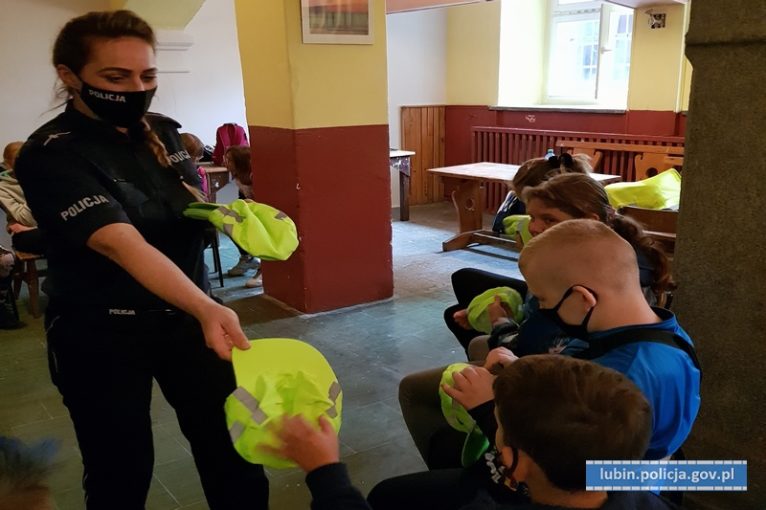 Na koniec spotkania uczestnicy otrzymali od policjantki czapki odblaskowe.
