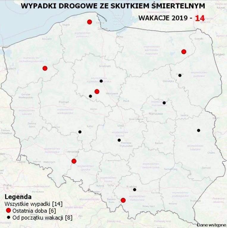 Policyjna mapa już działa. Można na niej znaleźć wypadki z ostatniej doby oraz wszystkie, które wydarzyły się od początku wakacji.