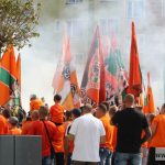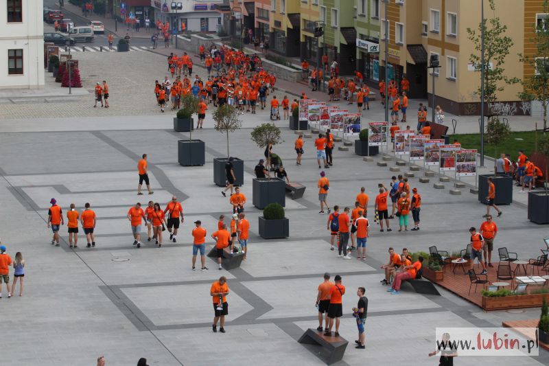 Rynek przez chwilę przybrał kolor miedziany. Wszystko za sprawą pochodu kibiców, przed dzisiejszym meczem Zagłębie Lubin – Zagłębie Sosnowiec.