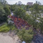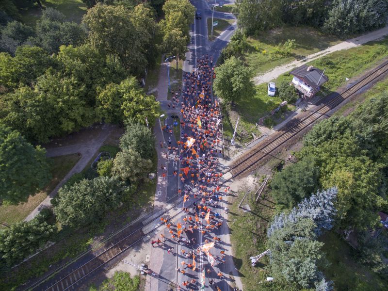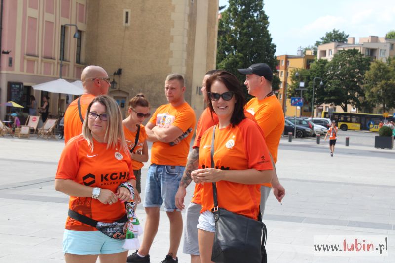 Miedziowa armia na miejsce zbiórki wybrała rynek, gdzie spotkało się kilkuset fanów piłki nożnej. Rozpoczęli głośnym dopingiem z serca miasta. Odpalono racę i wzniesiono kilka stadionowych okrzyków. Z rynku wystartowali o godzinie 16.